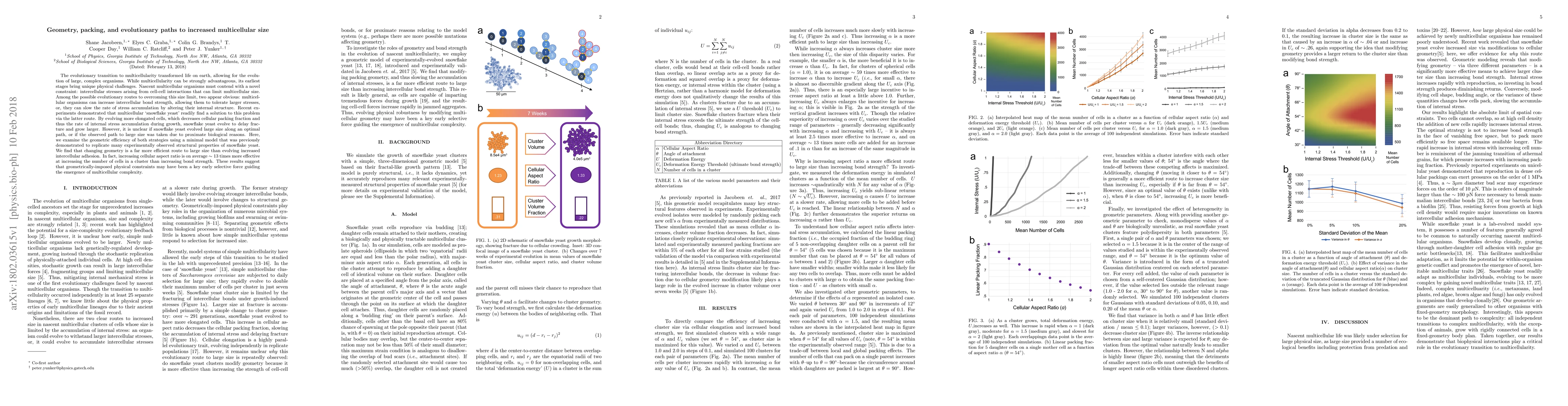 The evolutionary transition to multicellularity transformed life on earth, allowing for the evolution of large, complex organisms. While multicellularity can be strongly advantageous, its earliest stages bring unique physical challenges. Nascent multicellular organisms must contend with a novel constraint: intercellular stresses arising from cell-cell interactions that can limit multicellular size. Among the possible evolutionary routes to overcoming this size limit, two appear obvious: multicellular organisms can increase intercellular bond strength, allowing them to tolerate larger stresses, or, they can slow the rate of stress accumulation by altering their internal structure. Recent experiments demonstrated that multicellular 'snowflake yeast' readily find a solution to this problem via the latter route. By evolving more elongated cells, which decreases cellular packing fraction and thus the rate of internal stress accumulation during growth, snowflake yeast evolve to delay fracture and grow larger. However, it is unclear if snowflake yeast evolved large size along an optimal path, or if the observed path to large size was taken due to proximate biological reasons. Here, we examine the geometric efficiency of both strategies using a minimal model that was previously demonstrated to replicate many experimentally observed structural properties of snowflake yeast. We find that changing geometry is a far more efficient route to large size than evolving increased intercellular adhesion. In fact, increasing cellular aspect ratio is on average ~13 times more effective at increasing the number of cells in a cluster than increasing bond strength. These results suggest that geometrically-imposed physical constraints may have been a key early selective force guiding the emergence of multicellular complexity.