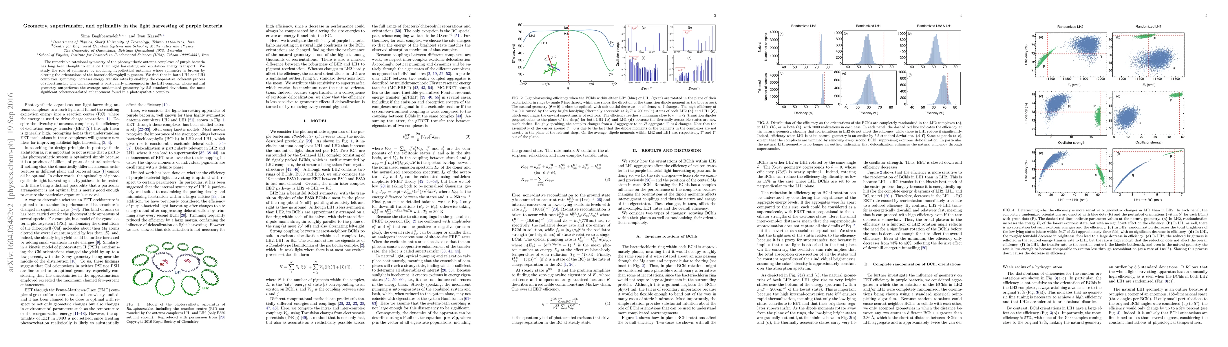 The study reveals that the rotational symmetry in purple bacteria's photosynthetic antenna complexes significantly boosts energy transfer rates through a cooperative, coherent process called supertransfer. The LH1 complex shows the most pronounced enhancement, outperforming randomized geometries by 5.5 standard deviations.