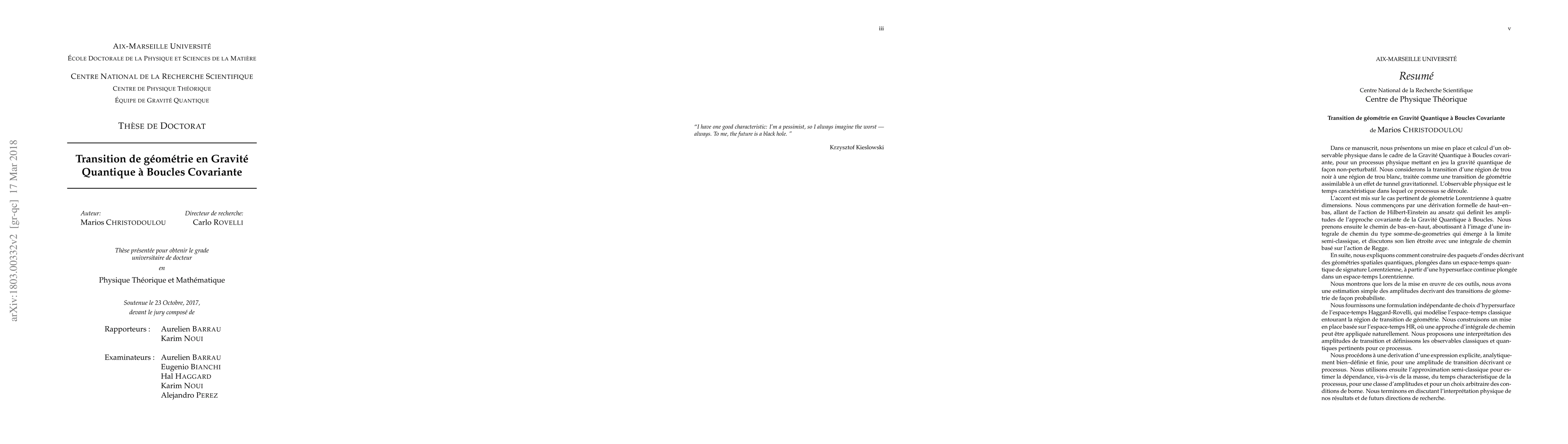 This paper investigates a quantum geometry transition in covariant Loop Quantum Gravity, specifically the transformation from a trapped to an anti-trapped region, analogous to black hole to white hole tunneling. It derives a finite transition amplitude and concludes that the transition is allowed, with a linearly scaling duration and exponentially suppressed but non-zero probability.