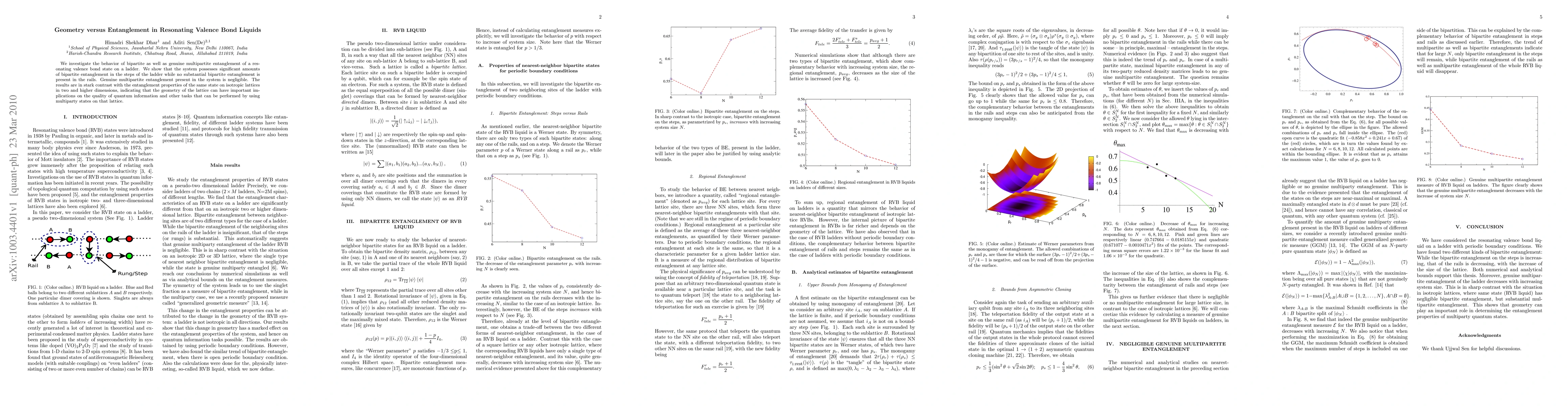This paper examines the entanglement in a resonating valence bond state on a ladder, revealing significant bipartite entanglement in the ladder's steps but not in the rails, with negligible genuine multipartite entanglement. The findings highlight the impact of lattice geometry on quantum information quality and multiparty state tasks.