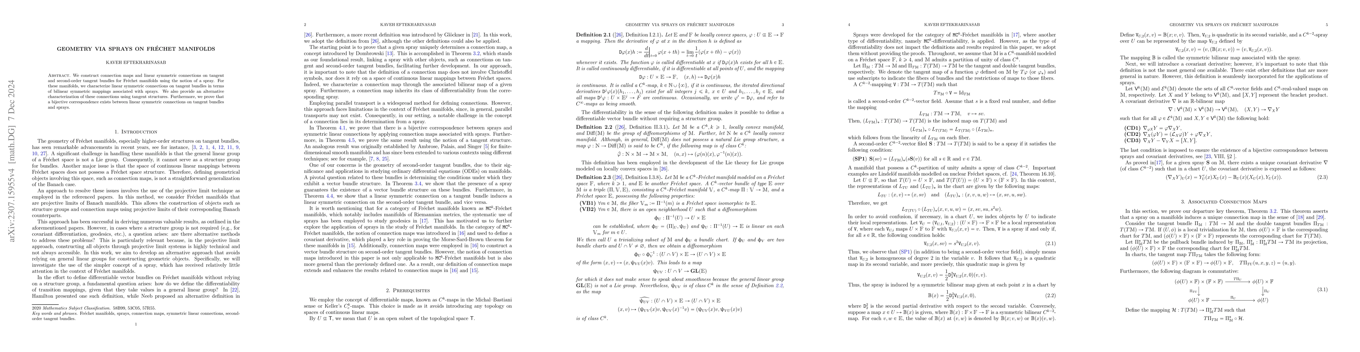 This paper constructs linear symmetric connections on tangent and second-order tangent bundles for Frechet manifolds using sprays, and establishes a bijective correspondence between these connections and connection maps induced by sprays. It also characterizes these connections through associated bilinear symmetric mappings and tangent structures.