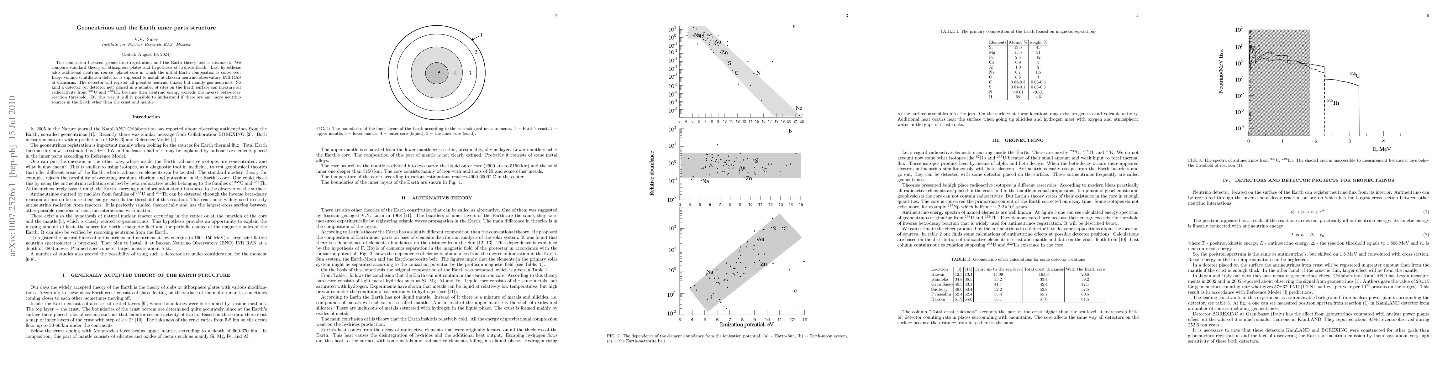 The connection between geoneutrino registration and the Earth theory test is discussed. We compare standard theory of lithosphere plates and hypothesis of hydride Earth. Last hypothesis adds additional neutrino source $-$ planet core in which the initial Earth composition is conserved. Large volume scintillation detector is supposed to install at Baksan neutrino observatory INR RAS at Caucasus. The detector will register all possible neutrino fluxes, but mainly geo-neutrinos. So kind a detector (or detector net) placed in a number of sites on the Earth surface can measure all radioactivity from $^{238}$U and $^{232}$Th, because their neutrino energy exceeds the inverse beta-decay reaction threshold. By this way it will it possible to understand if there are any more neutrino sources in the Earth other than the crust and mantle.