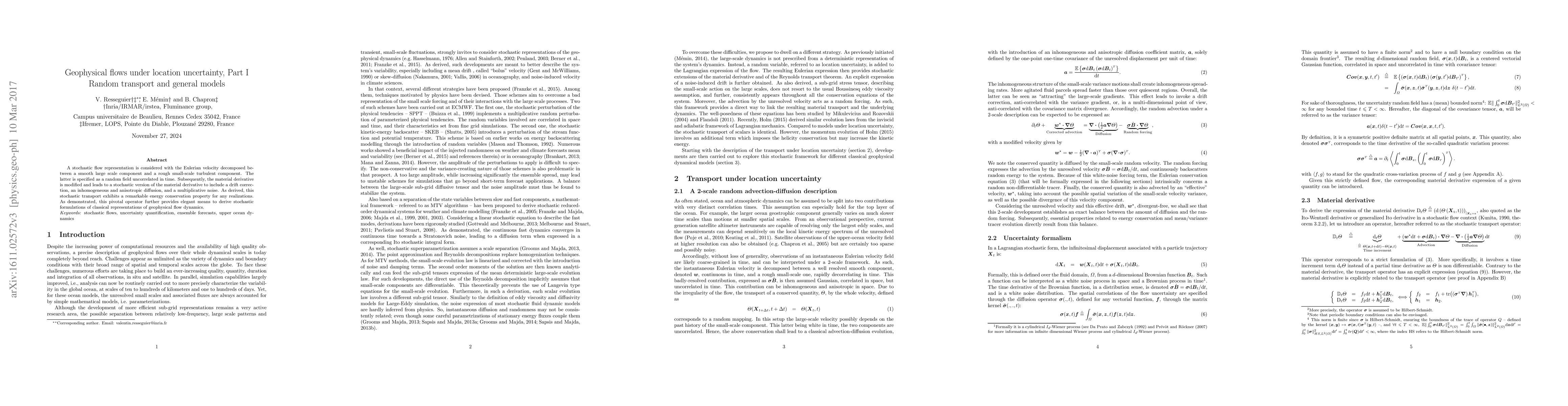 Researchers developed a stochastic flow representation that captures geophysical flows with location uncertainty, exhibiting remarkable energy conservation properties. This new framework provides an elegant means to derive stochastic formulations of classical representations of geophysical flow dynamics.