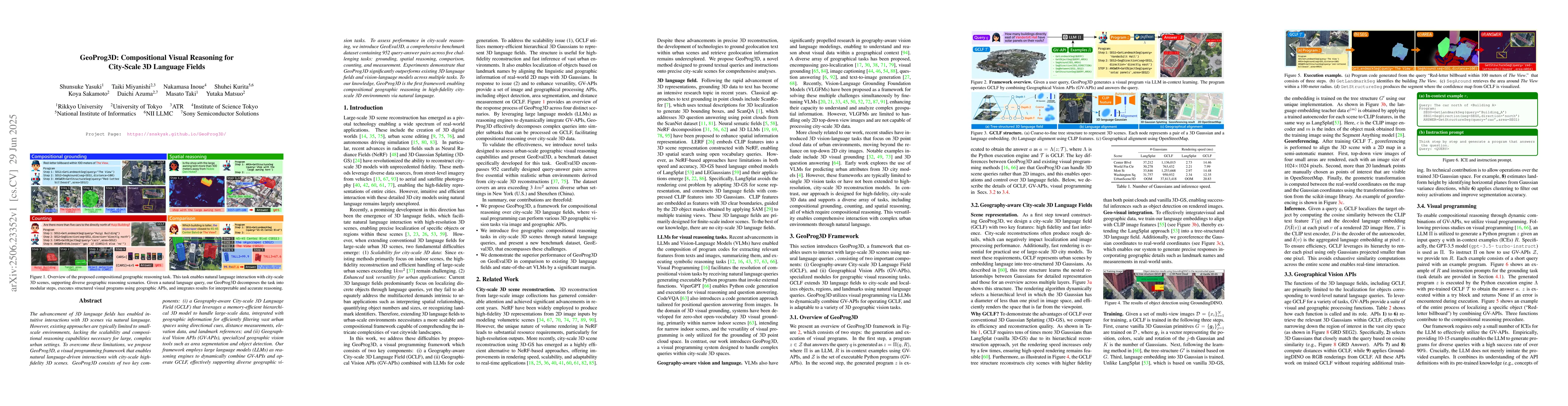 The advancement of 3D language fields has enabled intuitive interactions with 3D scenes via natural language. However, existing approaches are typically limited to small-scale environments, lacking the scalability and compositional reasoning capabilities necessary for large, complex urban settings. To overcome these limitations, we propose GeoProg3D, a visual programming framework that enables natural language-driven interactions with city-scale high-fidelity 3D scenes. GeoProg3D consists of two key components: (i) a Geography-aware City-scale 3D Language Field (GCLF) that leverages a memory-efficient hierarchical 3D model to handle large-scale data, integrated with geographic information for efficiently filtering vast urban spaces using directional cues, distance measurements, elevation data, and landmark references; and (ii) Geographical Vision APIs (GV-APIs), specialized geographic vision tools such as area segmentation and object detection. Our framework employs large language models (LLMs) as reasoning engines to dynamically combine GV-APIs and operate GCLF, effectively supporting diverse geographic vision tasks. To assess performance in city-scale reasoning, we introduce GeoEval3D, a comprehensive benchmark dataset containing 952 query-answer pairs across five challenging tasks: grounding, spatial reasoning, comparison, counting, and measurement. Experiments demonstrate that GeoProg3D significantly outperforms existing 3D language fields and vision-language models across multiple tasks. To our knowledge, GeoProg3D is the first framework enabling compositional geographic reasoning in high-fidelity city-scale 3D environments via natural language. The code is available at https://snskysk.github.io/GeoProg3D/.