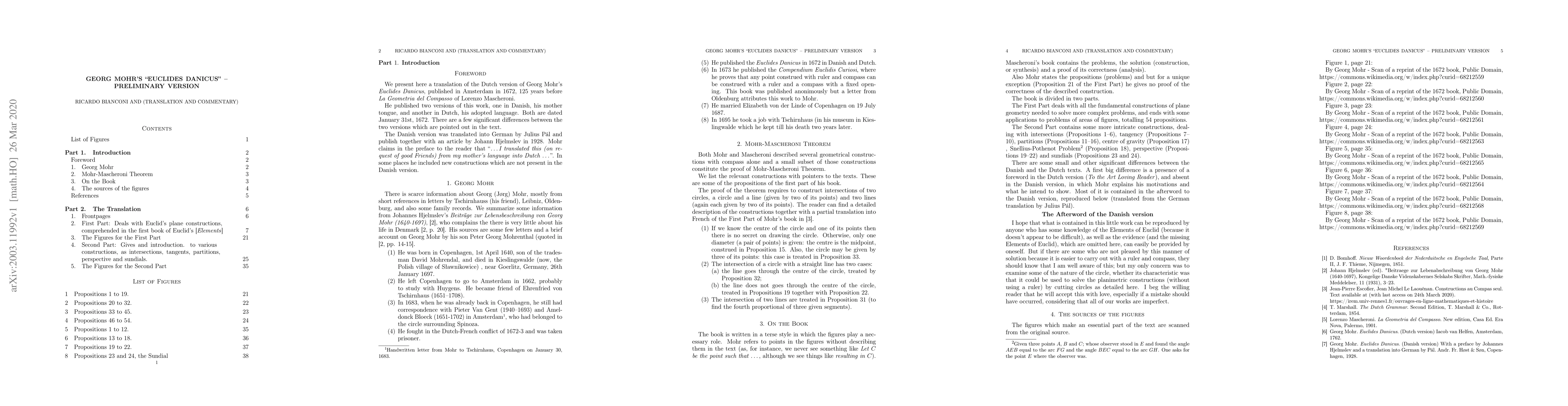 We present here a preliminary version of a translation with comments of Georg Mohr's book "Euclides Danicus", where the first proof of Mohr-Mascheroni Theorem appeared in 1672, 125 years before Mascheroni's book.