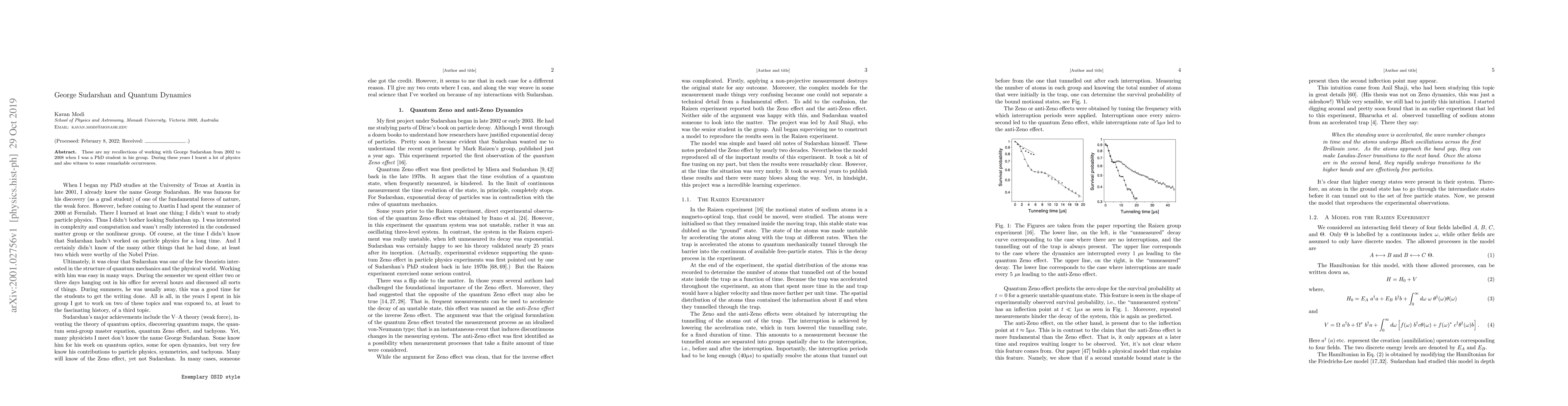 These are my recollections of working with George Sudarshan from 2002 to 2008 when I was a PhD student in his group. During these years I learnt a lot of physics and also witness to some remarkable occurrences.