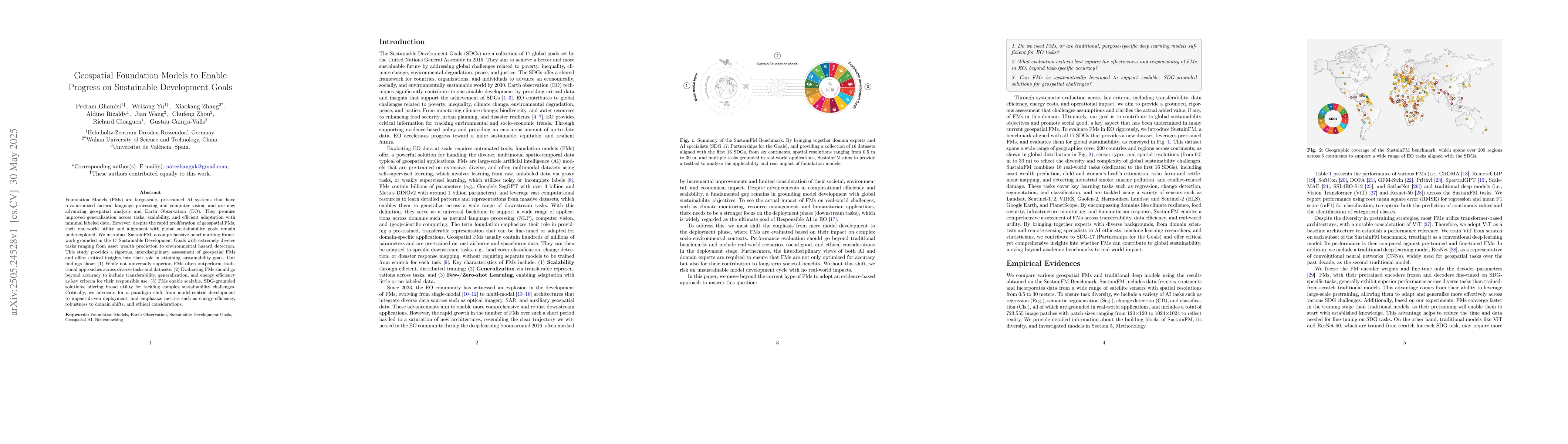 SustainFM, a benchmarking framework for geospatial FMs aligned with SDGs, offering a rigorous, interdisciplinary assessment of FMs in the context of sustainability challenges.