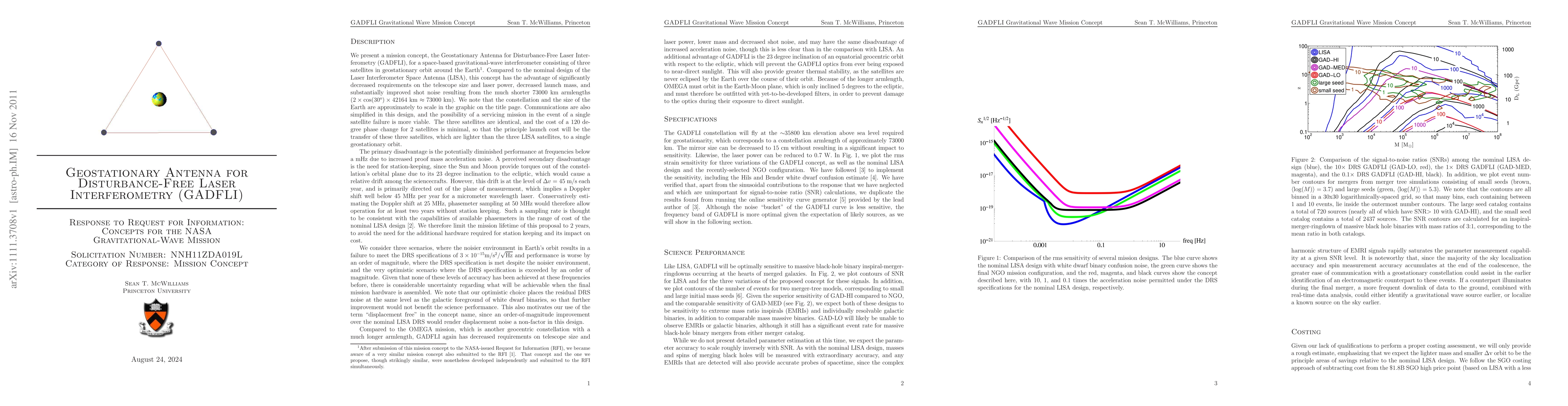 The GADFLI mission proposes a geostationary satellite-based gravitational-wave interferometer with reduced telescope size, laser power, and launch mass, and lower overall cost compared to LISA, while maintaining similar scientific observations of massive black-hole binaries.
