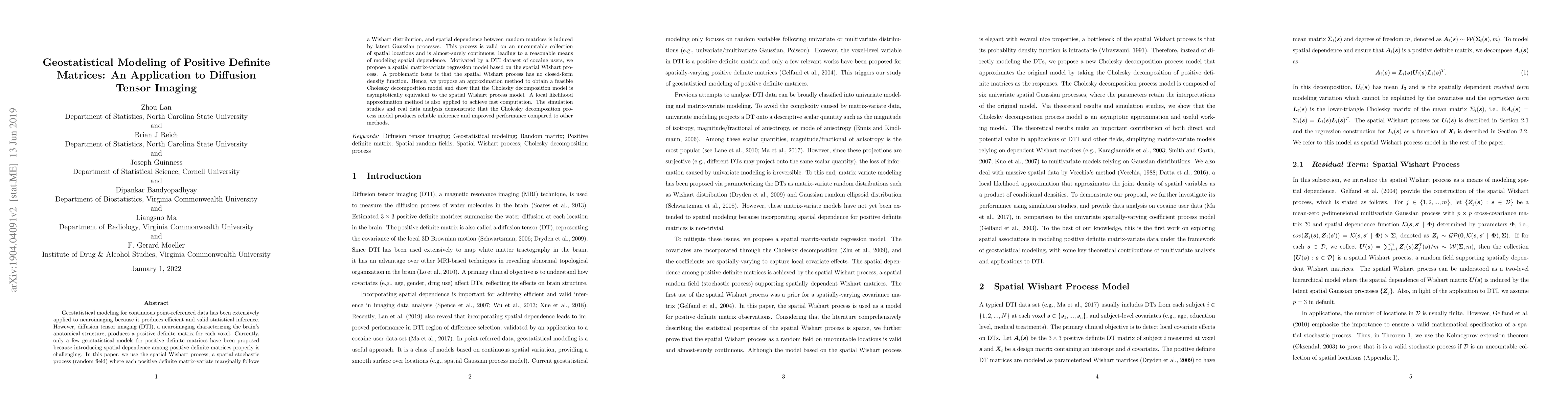 This paper introduces a spatial Wishart process for geostatistical modeling of positive definite matrices, specifically applied to diffusion tensor imaging (DTI). The proposed spatial matrix-variate regression model, based on the spatial Wishart process, addresses the challenge of modeling spatial dependence among p.d. matrices, offering reliable inference and improved performance over existing methods, as demonstrated through simulation and real data analysis.