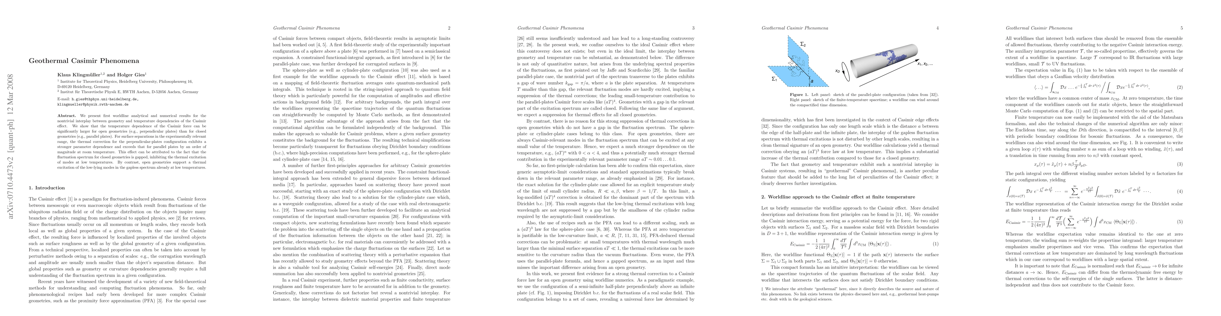 We present first worldline analytical and numerical results for the nontrivial interplay between geometry and temperature dependencies of the Casimir effect. We show that the temperature dependence of the Casimir force can be significantly larger for open geometries (e.g., perpendicular plates) than for closed geometries (e.g., parallel plates). For surface separations in the experimentally relevant range, the thermal correction for the perpendicular-plates configuration exhibits a stronger parameter dependence and exceeds that for parallel plates by an order of magnitude at room temperature. This effect can be attributed to the fact that the fluctuation spectrum for closed geometries is gapped, inhibiting the thermal excitation of modes at low temperatures. By contrast, open geometries support a thermal excitation of the low-lying modes in the gapless spectrum already at low temperatures.