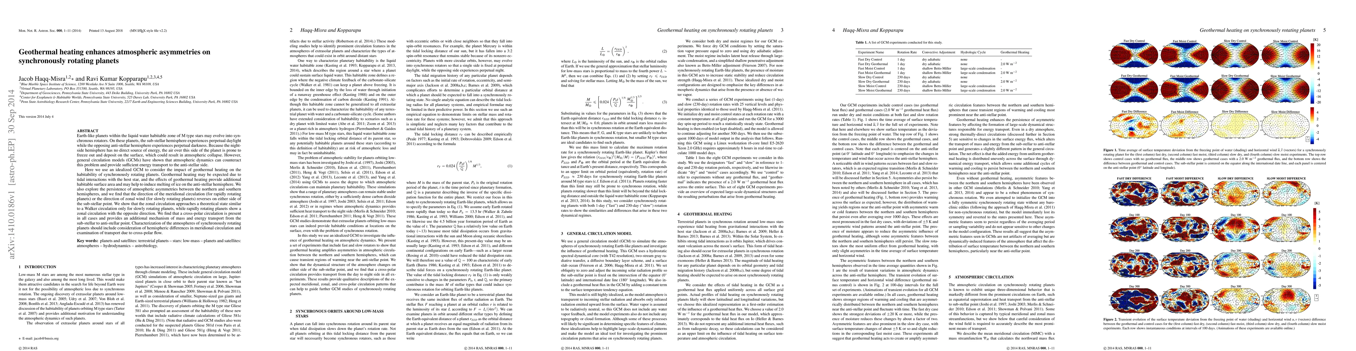 The paper presents detailed GCM experiments that reveal how geothermal heating affects atmospheric circulation patterns, including the Walker circulation and cross-polar flow, on synchronous rotators.