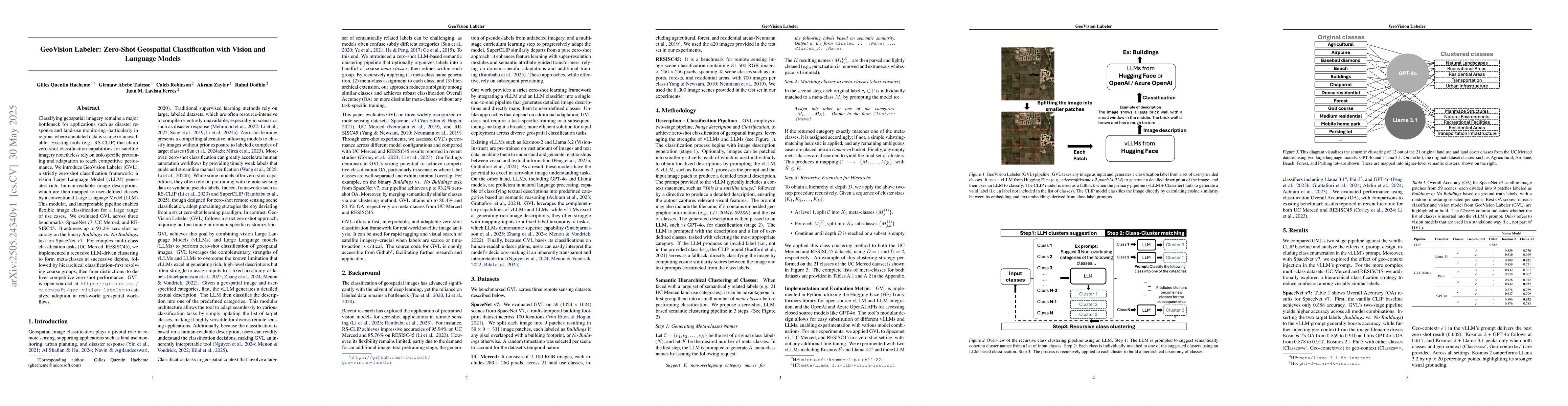 Researchers introduced GeoVision Labeler, a zero-shot geospatial classification framework that uses vision and language models to classify images with high accuracy, enabling flexible image classification for various use cases.
