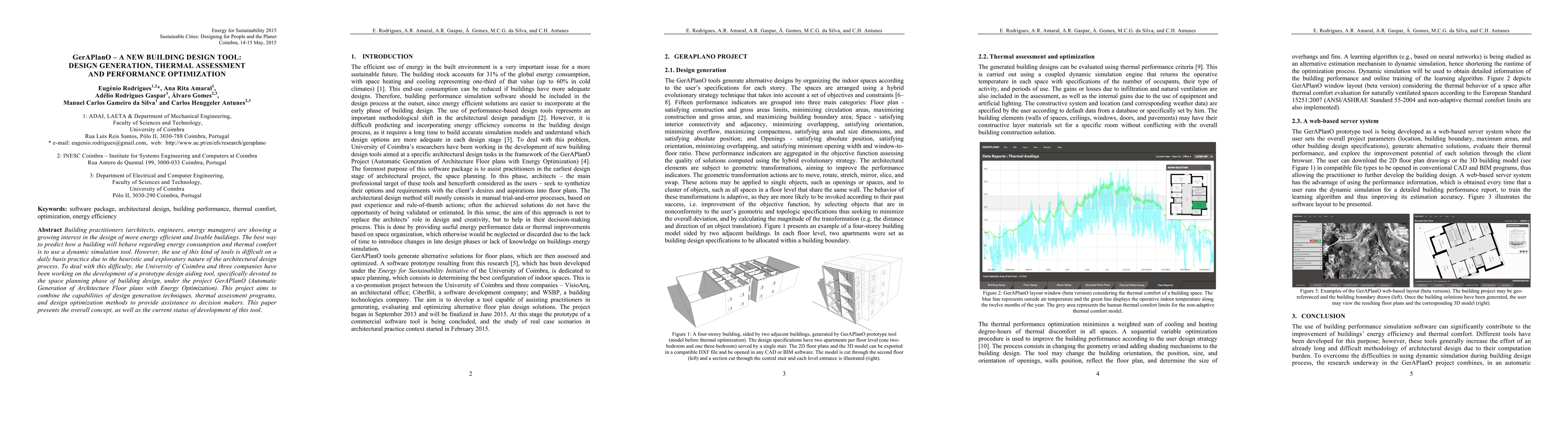 The GerAPlanO project aims to develop a prototype tool for aiding architects and engineers in generating energy-efficient building designs, assessing thermal performance, and optimizing space planning. The tool integrates design generation, thermal assessment, and optimization methods to facilitate the complex architectural design process.