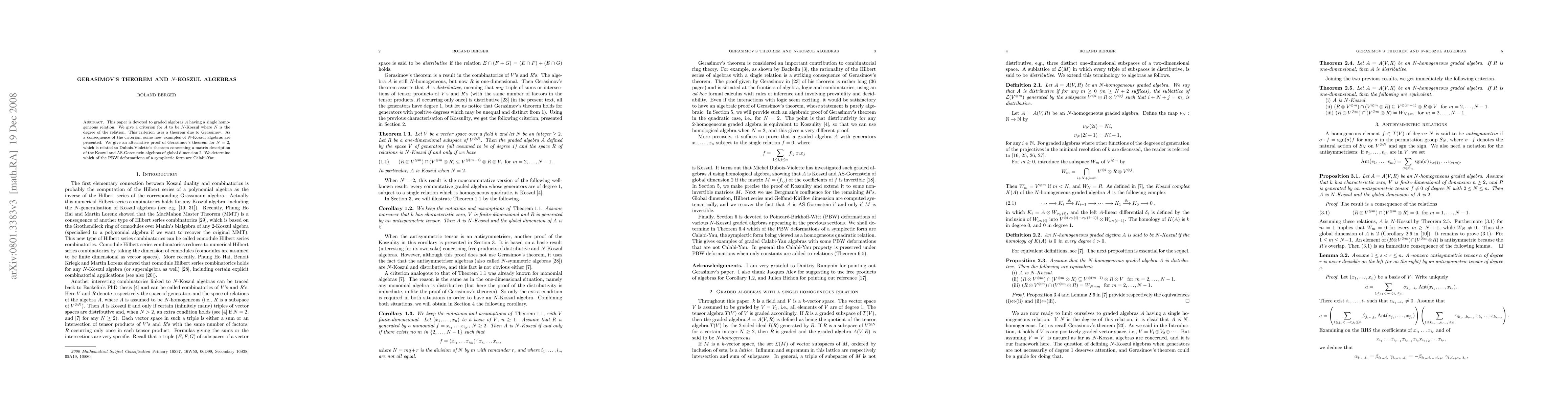Gerasimov's theorem is utilized to establish a criterion for N-Koszul algebras, offering new examples and providing an alternative proof for N=2. Additionally, related results on Calabi-Yau algebras are explored.