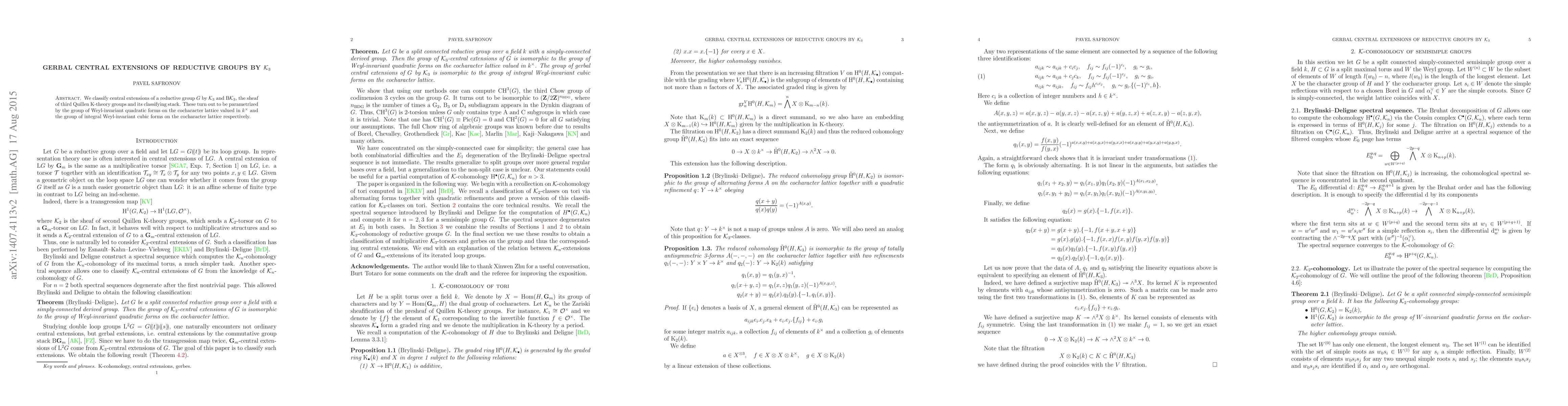 Researchers classified central extensions of reductive groups by K3 and its classifying stack, showing they are parametrized by quadratic forms and cubic forms on cocharacter lattices.