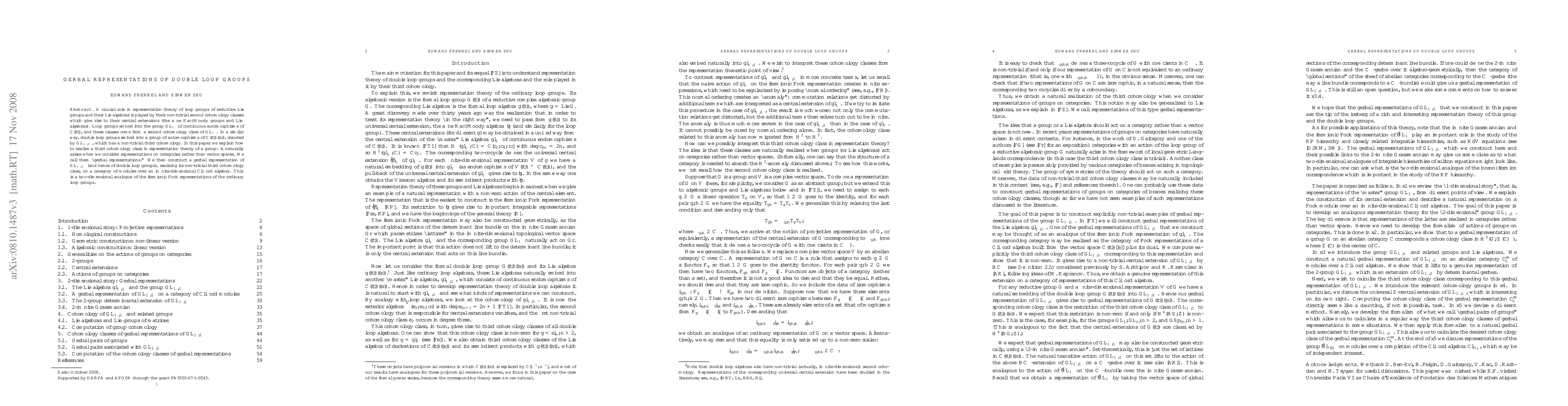 This paper explores the realization of a third cohomology class in the representation theory of double loop groups through "gerbal representations" on module categories over infinite-dimensional Clifford algebras, analogous to fermionic Fock representations of ordinary loop groups. The authors construct such a gerbal representation for GL_{\infty,\infty}.