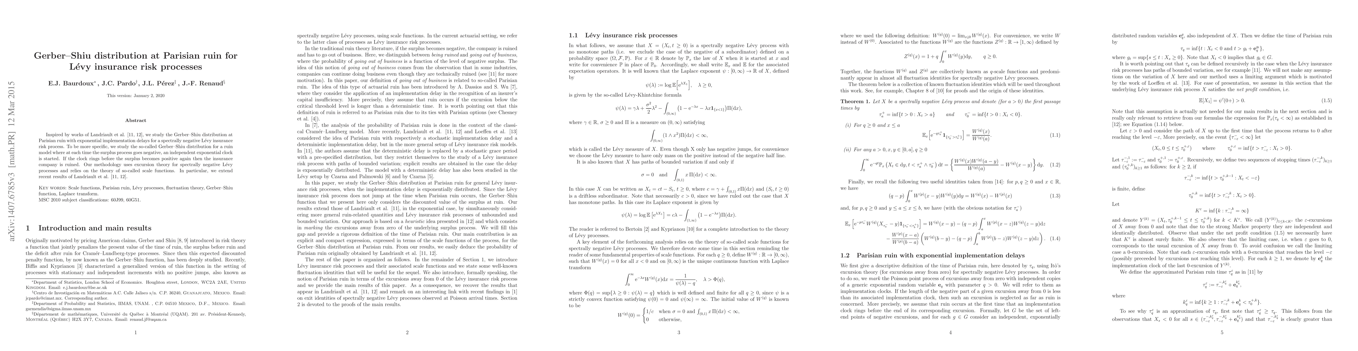 This paper investigates Gerber-Shiu functionals for an insurance risk model where ruin is Parisian (delayed) and driven by a spectrally negative Lévy process. It extends previous work by Landriault et al. using excursion theory and scale functions to analyze discounted penalties at ruin when the surplus process incurs delays before becoming positive again.