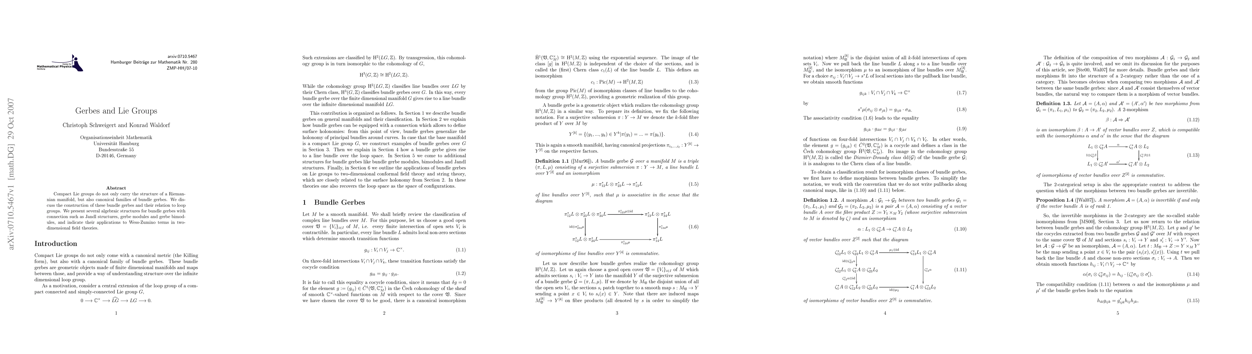 This paper reviews bundle gerbes and their intrinsic connection to Lie groups, focusing on how compact Lie groups naturally support canonical families of bundle gerbes. The discussion extends to algebraic structures involving these gerbes and their application to Wess-Zumino terms in two-dimensional field theories.