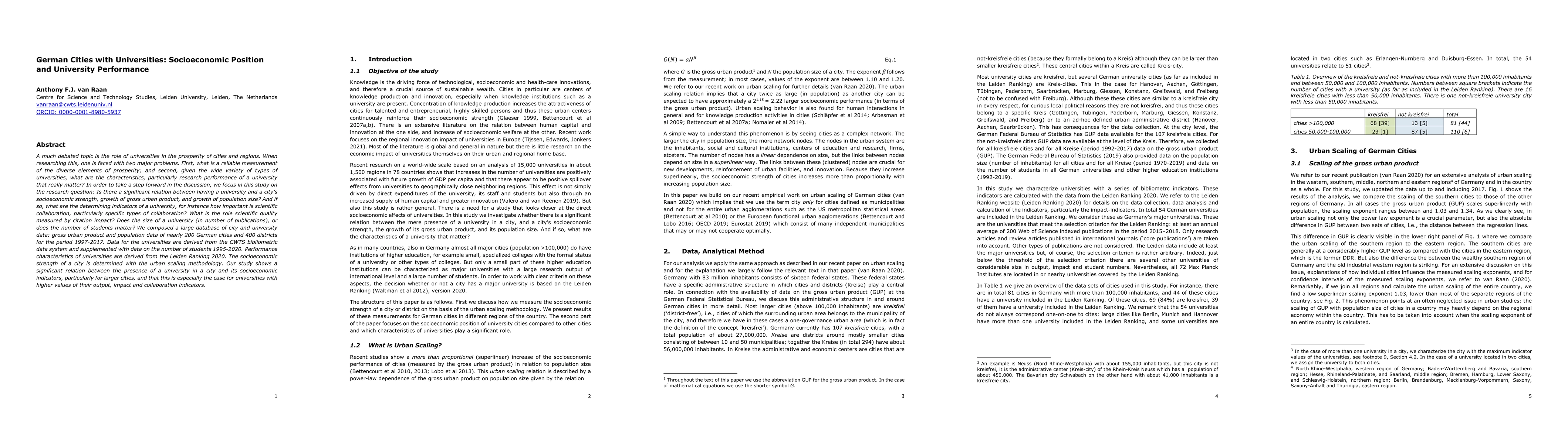 This study examines the impact of universities on the socioeconomic prosperity of German cities, finding a significant correlation between university performance, as measured by the Leiden Ranking, and city socioeconomic indicators, especially in larger cities with high-performing universities. The presence of such universities notably enhances urban socioeconomic strength.