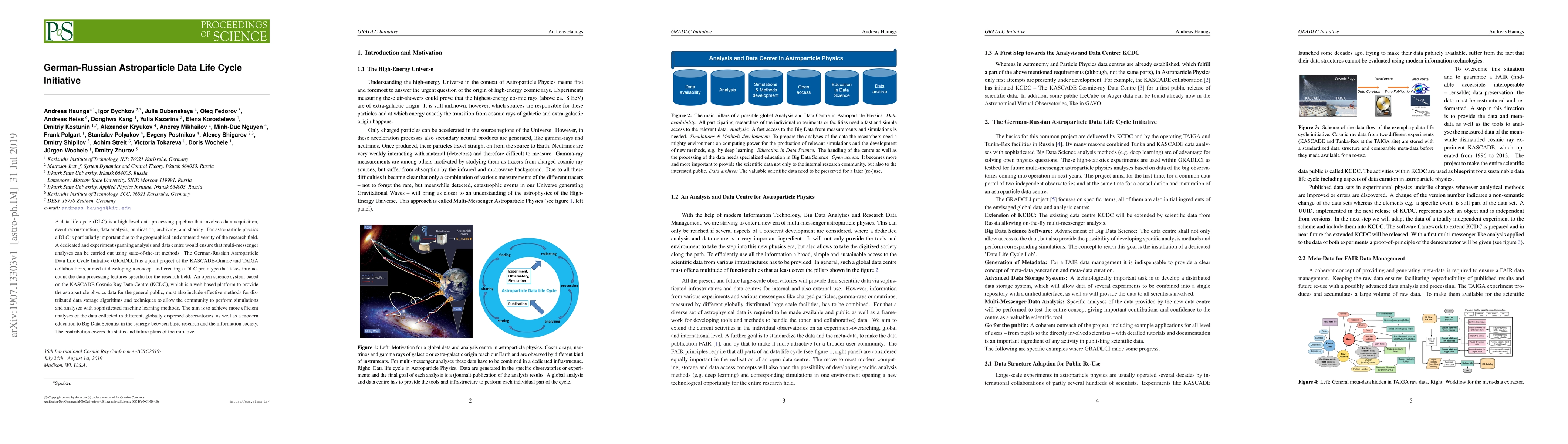 The German-Russian Astroparticle Data Life Cycle Initiative (GRADLCI) aims to develop a comprehensive data processing pipeline for astroparticle physics, integrating data acquisition, analysis, and sharing. The project seeks to enhance multi-messenger analysis and education in Big Data Science through a collaborative, web-based data centre.