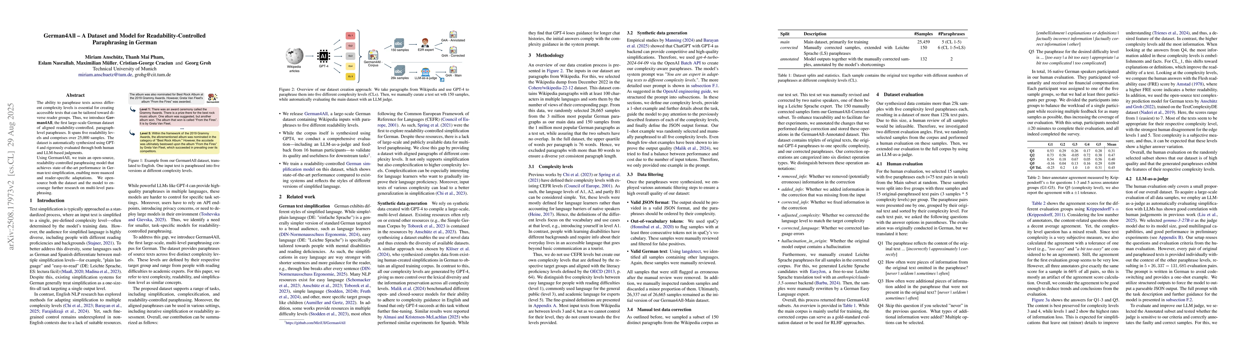 The ability to paraphrase texts across different complexity levels is essential for creating accessible texts that can be tailored toward diverse reader groups. Thus, we introduce German4All, the first large-scale German dataset of aligned readability-controlled, paragraph-level paraphrases. It spans five readability levels and comprises over 25,000 samples. The dataset is automatically synthesized using GPT-4 and rigorously evaluated through both human and LLM-based judgments. Using German4All, we train an open-source, readability-controlled paraphrasing model that achieves state-of-the-art performance in German text simplification, enabling more nuanced and reader-specific adaptations. We opensource both the dataset and the model to encourage further research on multi-level paraphrasing