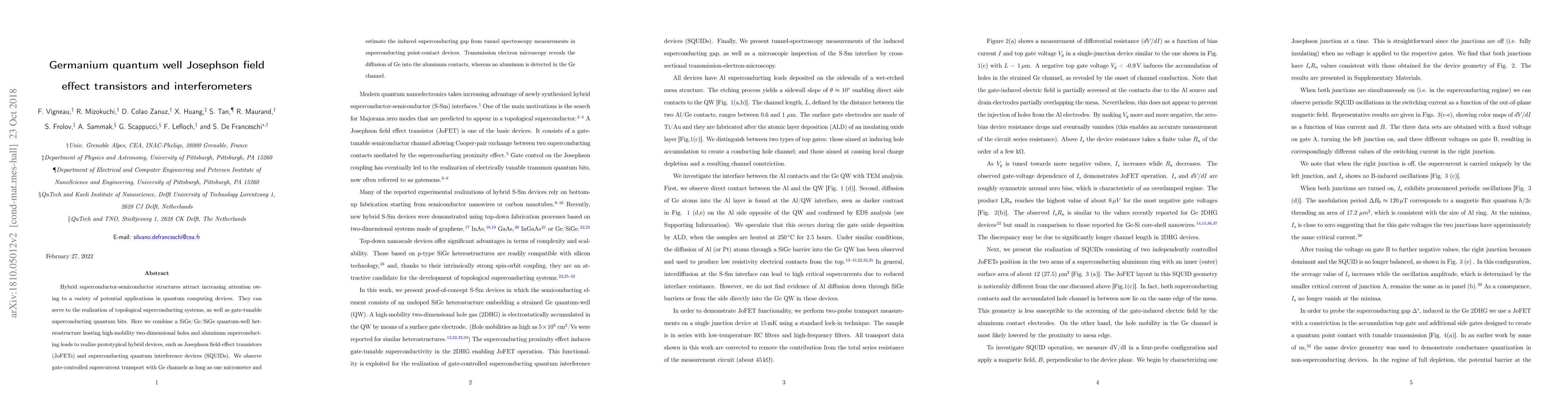 Researchers created hybrid devices using germanium quantum wells and aluminum superconducting leads, achieving gate-controlled supercurrent transport in Josephson field-effect transistors and superconducting quantum interference devices.