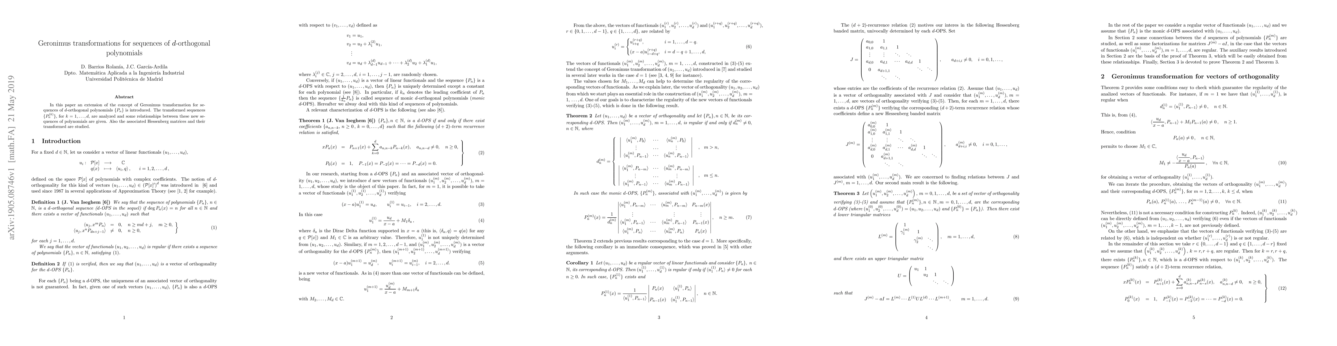 This paper extends the Geronimus transformation to sequences of $d$-orthogonal polynomials, analyzing the new transformed sequences $\{P^{(k)}_n\}$ and their relationships. It also examines the associated Hessenberg matrices and their transformations.