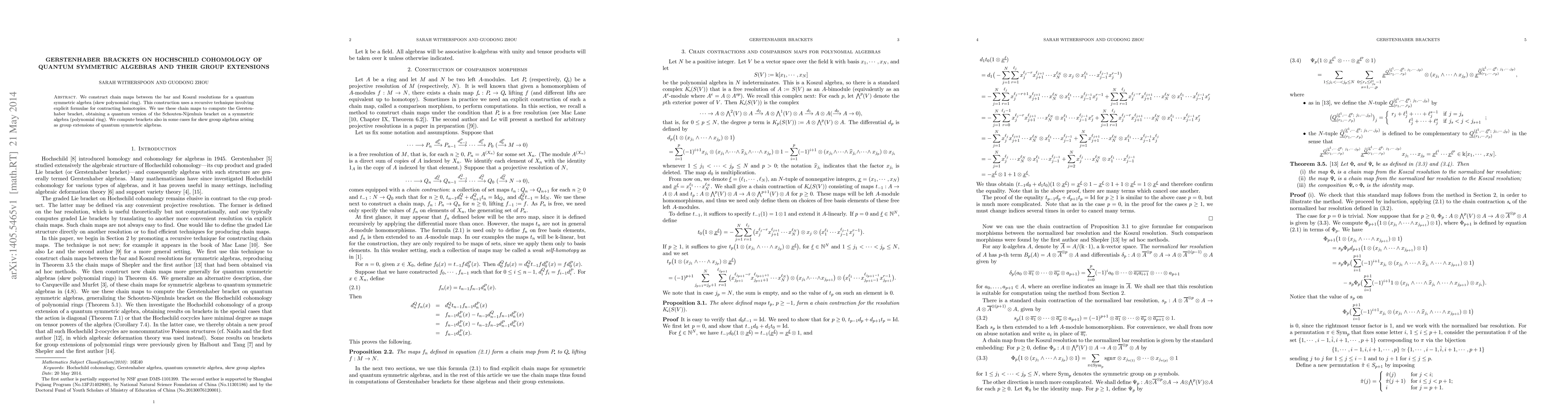 This paper constructs chain maps for quantum symmetric algebras using recursive techniques, which are used to compute the Gerstenhaber bracket, providing a quantum version of the Schouten-Nijenhuis bracket. It also computes these brackets for certain skew group algebras obtained as group extensions.