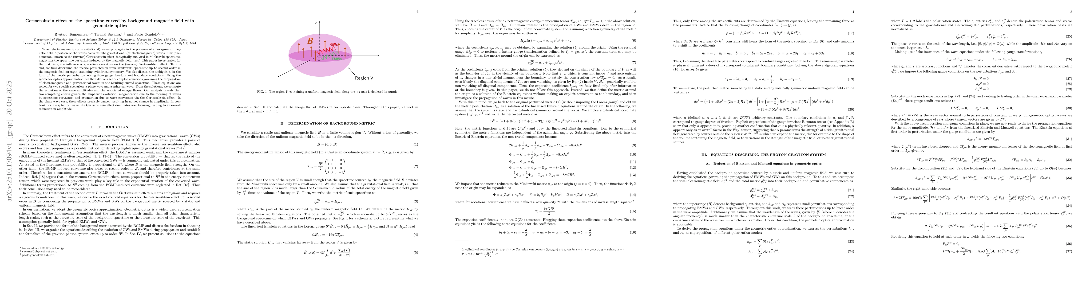 When electromagnetic (or gravitational) waves propagate in the presence of a background magnetic field, a portion of the waves converts into gravitational (or electromagnetic) waves. This phenomenon, known as the (inverse) Gertsenshtein effect, is typically analyzed in Minkowski spacetime, neglecting the spacetime curvature induced by the magnetic field itself. This paper investigates, for the first time, the influence of spacetime curvature on the (inverse) Gertsenshtein effect. To this end, we first determine the metric perturbation from Minkowski spacetime up to second order in the magnetic field strength, assuming cylindrical symmetry. We also discuss the ambiguities in the form of the metric perturbation arising from gauge freedom and boundary conditions. Using the geometric optics approximation, we then derive a set of coupled equations governing the propagation of electromagnetic and gravitational waves in the resulting curved spacetime. These equations are solved for two specific scenarios: a plane wave and a spherical wave. From the solutions, we compute the evolution of the wave amplitudes and the associated energy fluxes. Our analysis reveals that two competing effects govern the amplitude evolution: magnification due to the focusing of waves by spacetime curvature, and attenuation due to wave conversion via the Gertsenshtein effect. In the plane wave case, these effects precisely cancel, resulting in no net change in amplitude. In contrast, for the spherical wave, the Gertsenshtein effect dominates over focusing, leading to an overall reduction in amplitude.