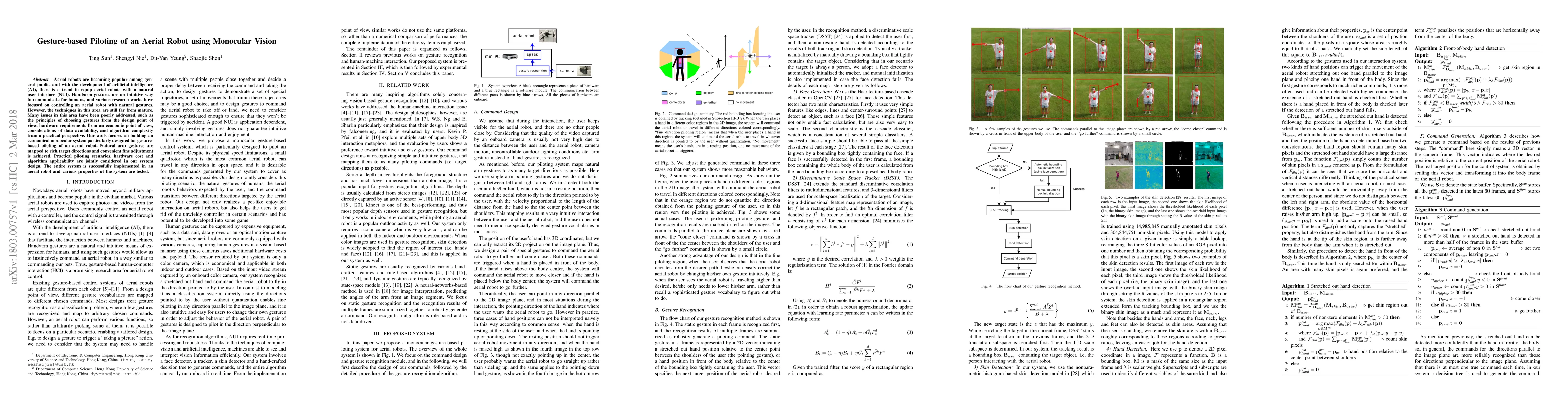This paper presents an economical monocular vision system for gesture-based piloting of aerial robots, mapping natural arm gestures to control directions and fine adjustments. The study addresses practical considerations like hardware cost and algorithm complexity, demonstrating successful implementation and testing in real scenarios.
