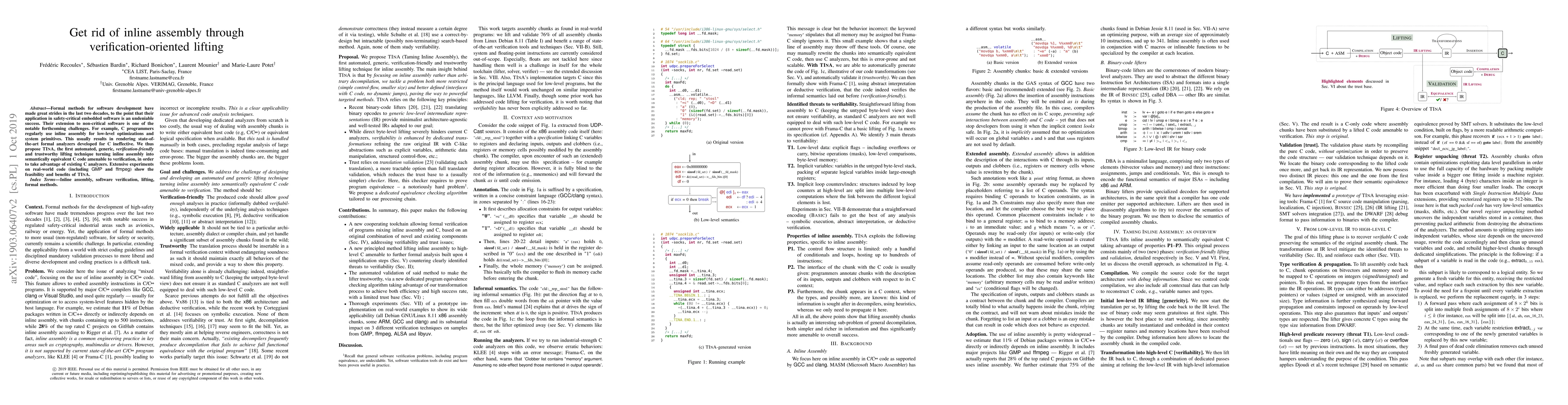 Formal methods for software development have made great strides in the last two decades, to the point that their application in safety-critical embedded software is an undeniable success. Their extension to non-critical software is one of the notable forthcoming challenges. For example, C programmers regularly use inline assembly for low-level optimizations and system primitives. This usually results in driving state-of-the-art formal analyzers developed for C ineffective. We thus propose TInA, an automated, generic, trustable and verification-oriented lifting technique turning inline assembly into semantically equivalent C code, in order to take advantage of existing C analyzers. Extensive experiments on real-world C code with inline assembly (including GMP and ffmpeg) show the feasibility and benefits of TInA.