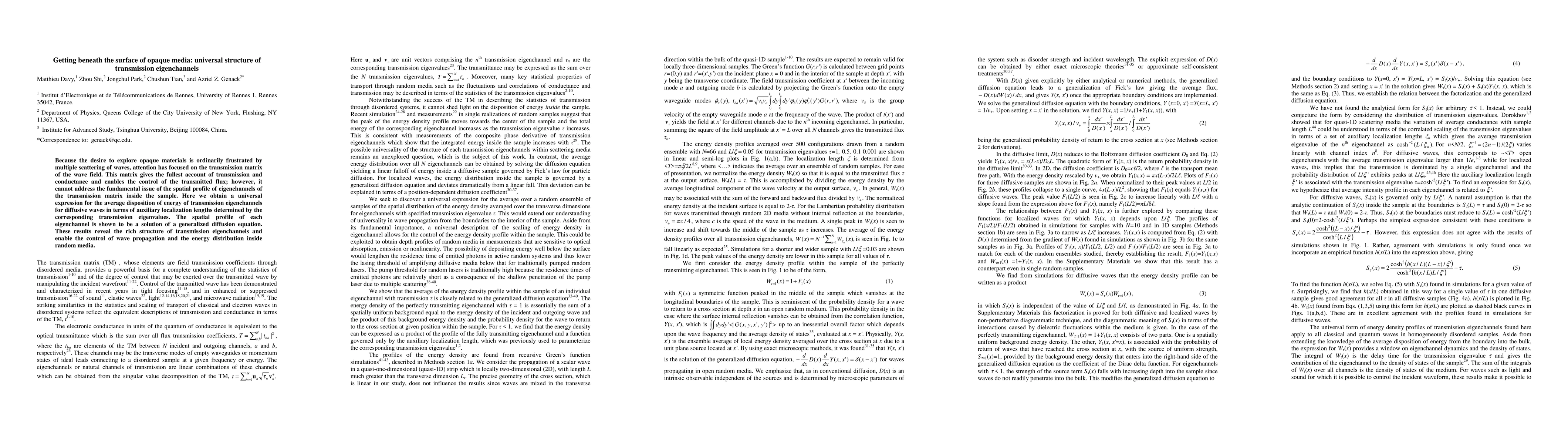 This paper presents a universal expression for the spatial profile of transmission eigenchannels in diffusive waves, revealing the underlying structure of wave propagation through opaque materials. The findings enable control over wave propagation and energy distribution within random media by understanding the generalized diffusion equation governing eigenchannel profiles.