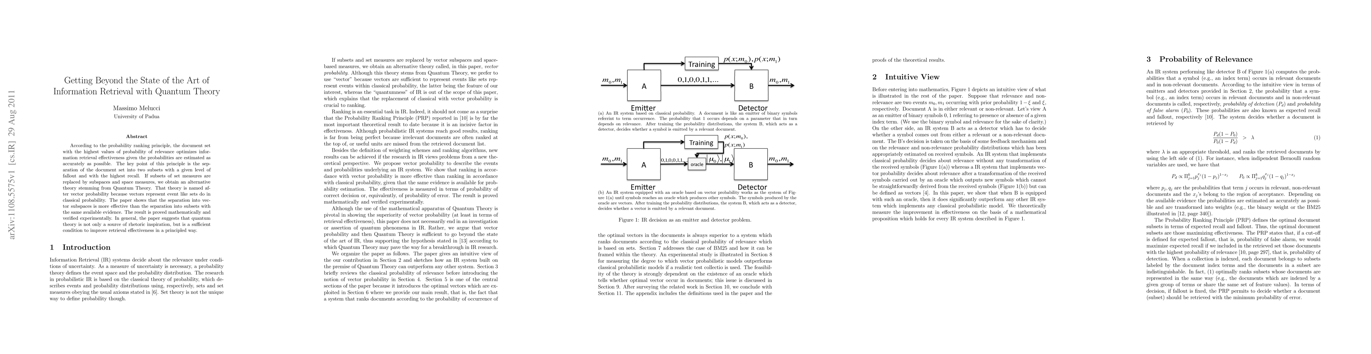 According to the probability ranking principle, the document set with the highest values of probability of relevance optimizes information retrieval effectiveness given the probabilities are estimated as accurately as possible. The key point of this principle is the separation of the document set into two subsets with a given level of fallout and with the highest recall. If subsets of set measures are replaced by subspaces and space measures, we obtain an alternative theory stemming from Quantum Theory. That theory is named after vector probability because vectors represent event like sets do in classical probability. The paper shows that the separation into vector subspaces is more effective than the separation into subsets with the same available evidence. The result is proved mathematically and verified experimentally. In general, the paper suggests that quantum theory is not only a source of rhetoric inspiration, but is a sufficient condition to improve retrieval effectiveness in a principled way.