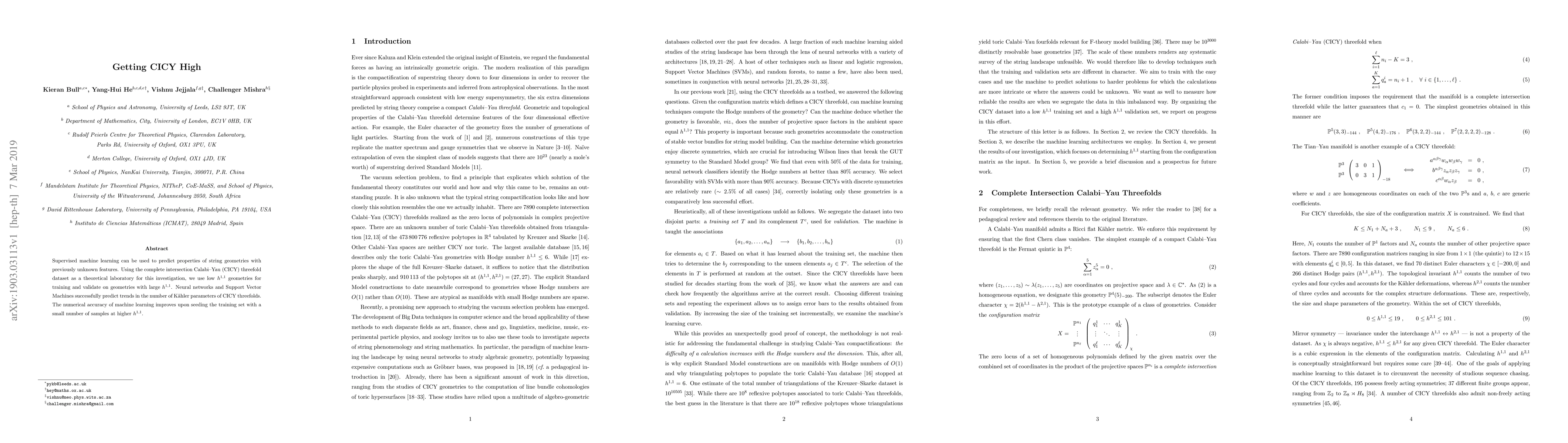 This research applies machine learning, specifically neural networks and Support Vector Machines, to predict properties of string geometries using CICY threefolds as a case study. The method shows improved accuracy when training sets are seeded with a small number of samples from higher h<sub>1,1</sub> geometries, demonstrating the potential of machine learning in studying complex theoretical physics concepts.