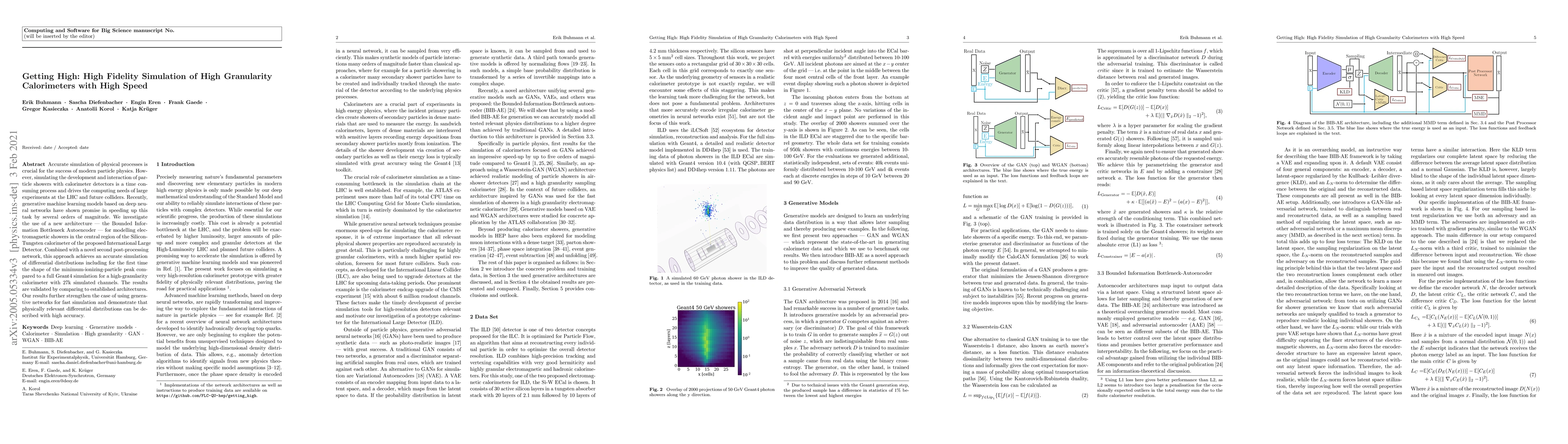 This paper explores the use of a Bounded Information Bottleneck Autoencoder combined with a post-processing network to simulate high granularity calorimeters, significantly speeding up the process compared to traditional methods. The new approach achieves high accuracy in modeling electromagnetic showers and differential distributions, including the minimum-ionizing-particle peak.