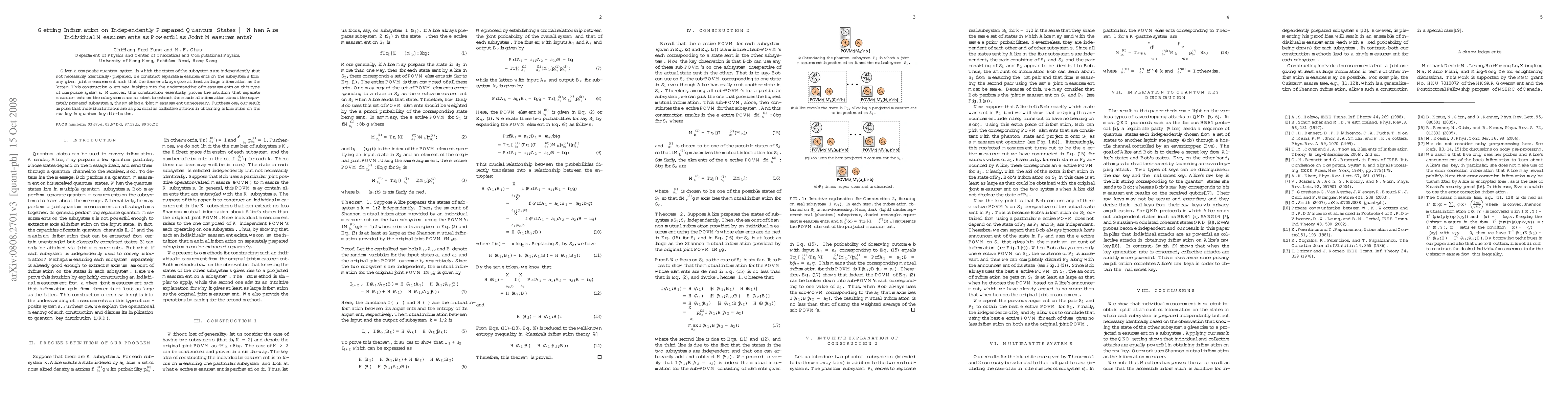 Researchers develop a method to extract maximum information from independently prepared quantum states using separate measurements on subsystems, showing individual attacks are as powerful as collective attacks in quantum key distribution.
