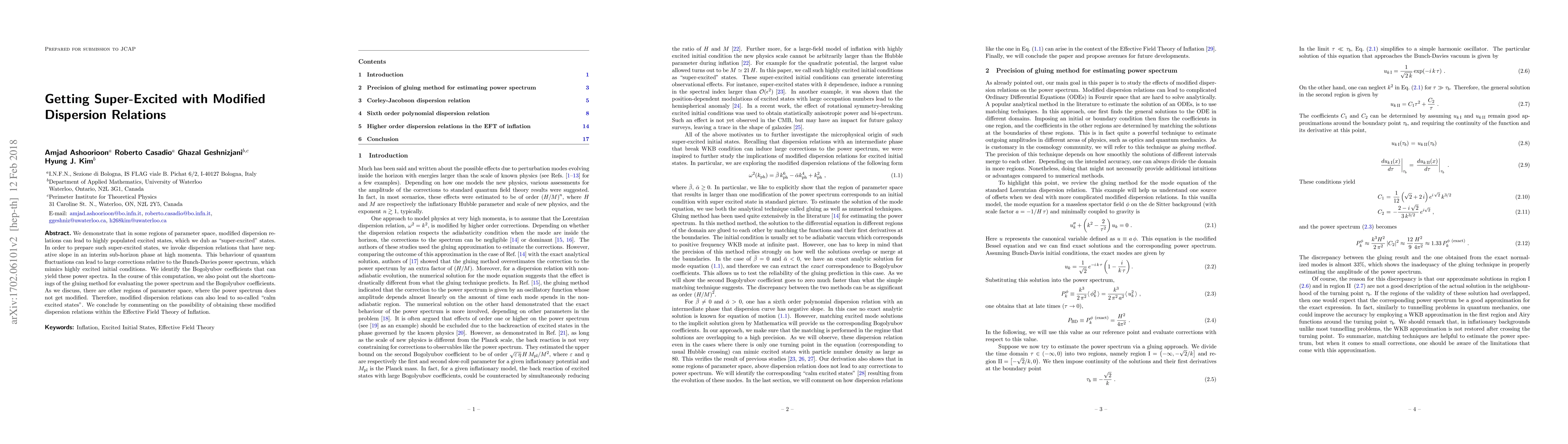 This paper explores how modified dispersion relations can generate "super-excited" states with high population in certain parameter regions, achieved through negative slope dispersion relations at high momenta. It also discusses the limitations of the gluing method and identifies "calm excited states" in other parameter regions, concluding with the potential for these modifications within the framework of Inflationary Effective Field Theory.