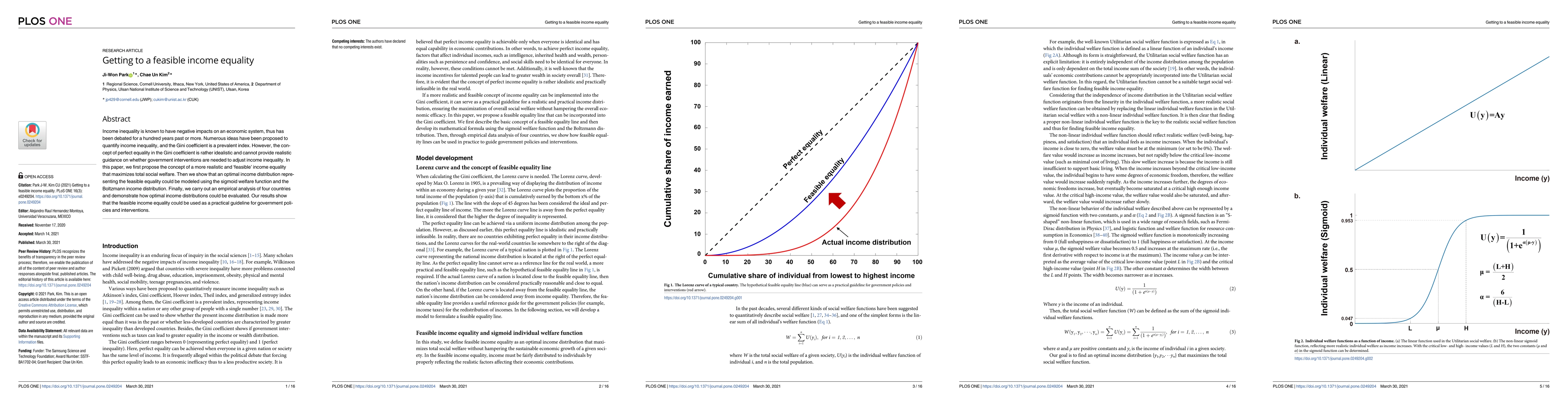 Income inequality is known to have negative impacts on an economic system, thus has been debated for a hundred years past or more. Numerous ideas have been proposed to quantify income inequality, and the Gini coefficient is a prevalent index. However, the concept of perfect equality in the Gini coefficient is rather idealistic and cannot provide realistic guidance on whether government interventions are needed to adjust income inequality. In this paper, we first propose the concept of a more realistic and feasible income equality that maximizes total social welfare. Then we show that an optimal income distribution representing the feasible equality could be modeled using the sigmoid welfare function and the Boltzmann income distribution. Finally, we carry out an empirical analysis of four countries and demonstrate how optimal income distributions could be evaluated. Our results show that the feasible income equality could be used as a practical guideline for government policies and interventions.