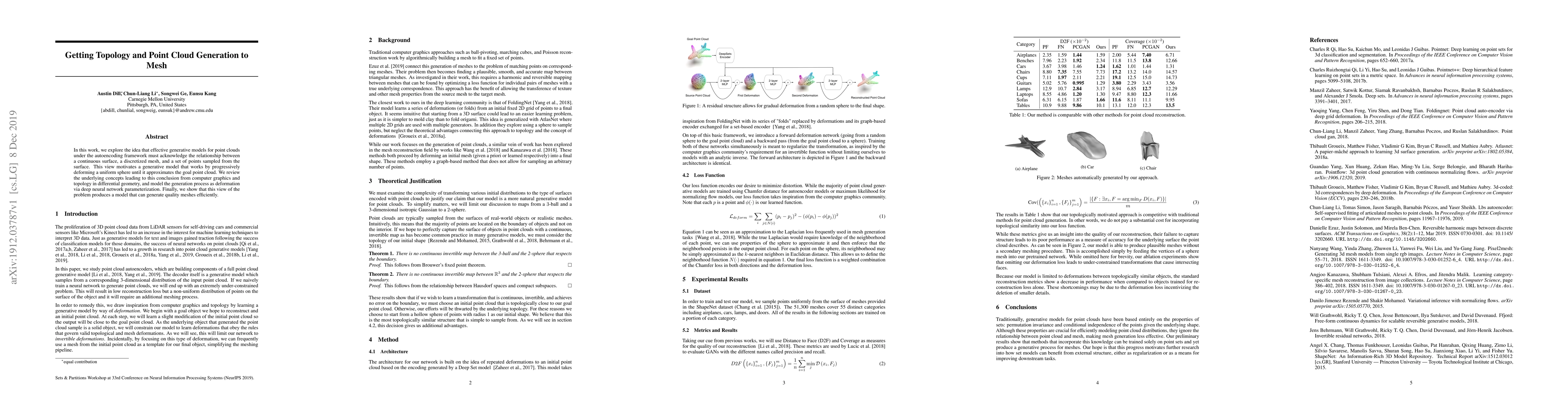 In this work, we explore the idea that effective generative models for point clouds under the autoencoding framework must acknowledge the relationship between a continuous surface, a discretized mesh, and a set of points sampled from the surface. This view motivates a generative model that works by progressively deforming a uniform sphere until it approximates the goal point cloud. We review the underlying concepts leading to this conclusion from computer graphics and topology in differential geometry, and model the generation process as deformation via deep neural network parameterization. Finally, we show that this view of the problem produces a model that can generate quality meshes efficiently.
