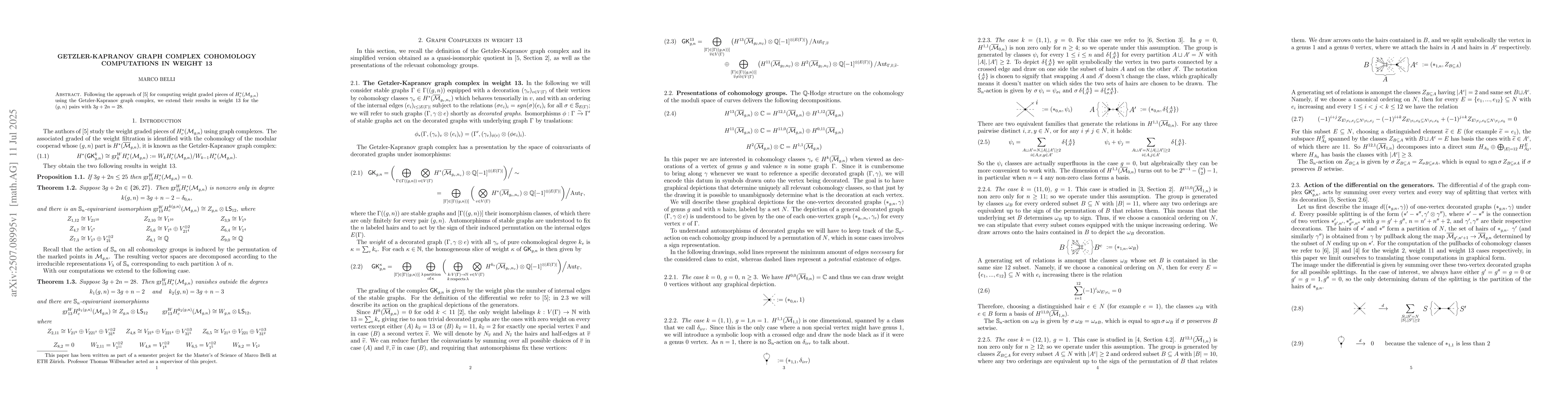 We study the weight-graded compactly supported cohomology of the moduli spaces of curves $\mathcal{M}_{g,n}$ using the Getzler-Kapranov graph complex. After recollecting the theory and some previous results, we compute the cohomology in weight 13 for the (g, n) pairs with 3g + 2n = 28.