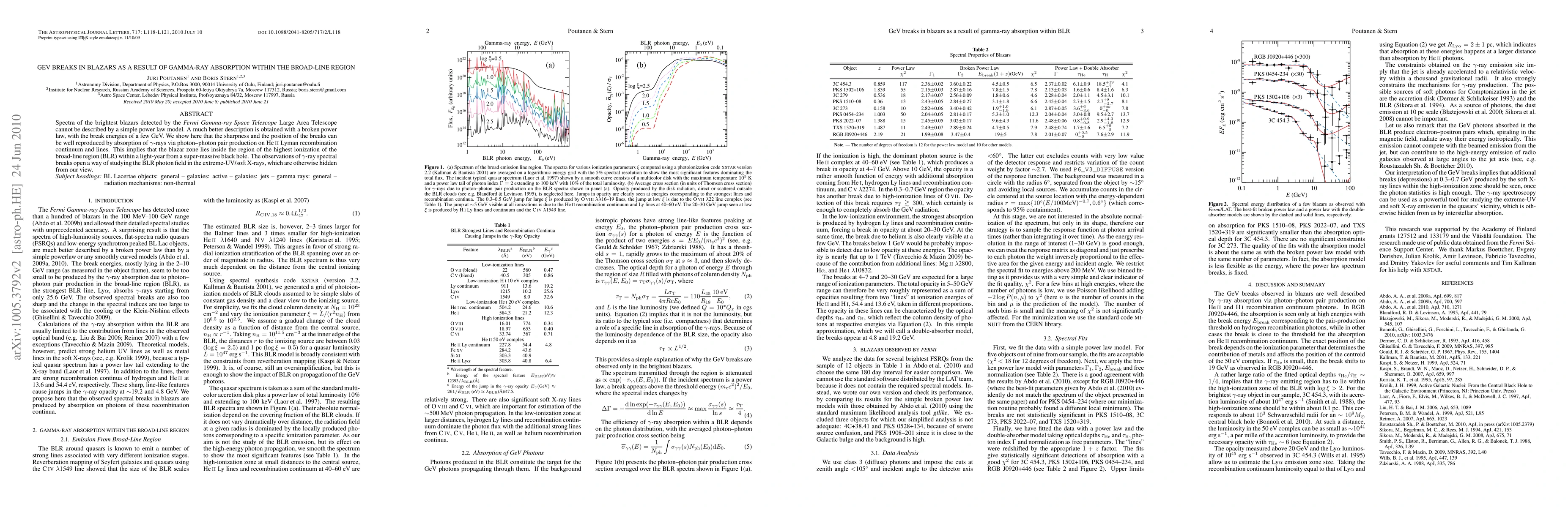 This paper demonstrates that GeV spectral breaks in blazars are due to gamma-ray absorption within the broad-line region, suggesting the blazar lies within the highest ionization zone of the BLR near a supermassive black hole. This absorption mechanism provides a unique window to study the extreme-UV/soft X-rays of the BLR.