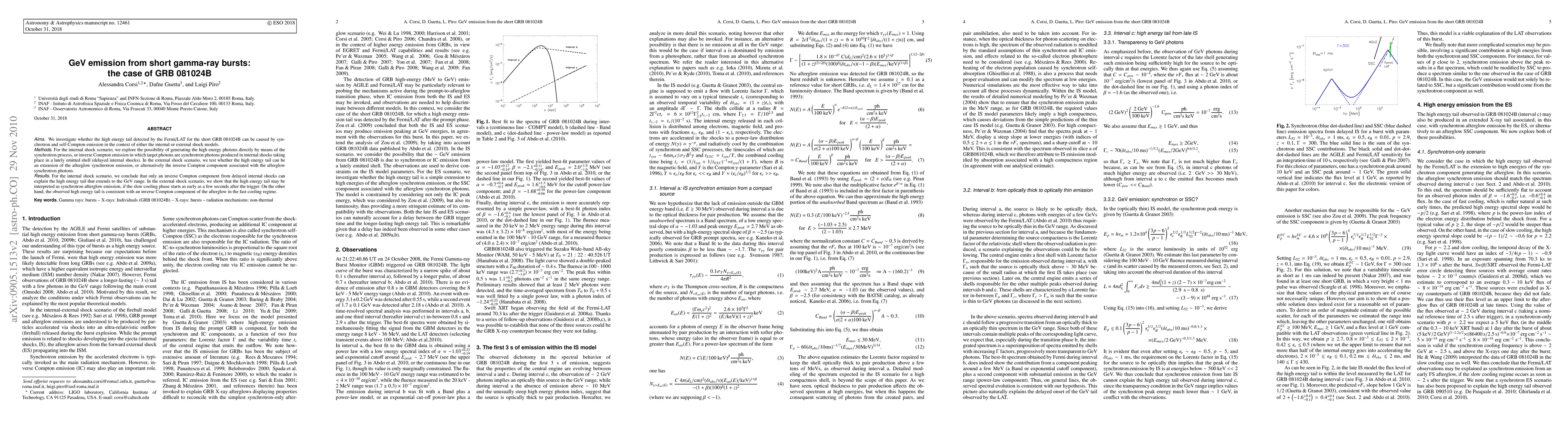 This paper examines the GeV emission from the short Gamma-Ray Burst GRB 081024B, exploring whether it arises from synchrotron or self-Compton processes in internal or external shock models. The study concludes that the high energy tail is best explained by inverse Compton emission from delayed internal shocks in the internal shock scenario and by either synchrotron or inverse Compton afterglow components in the external shock scenario.