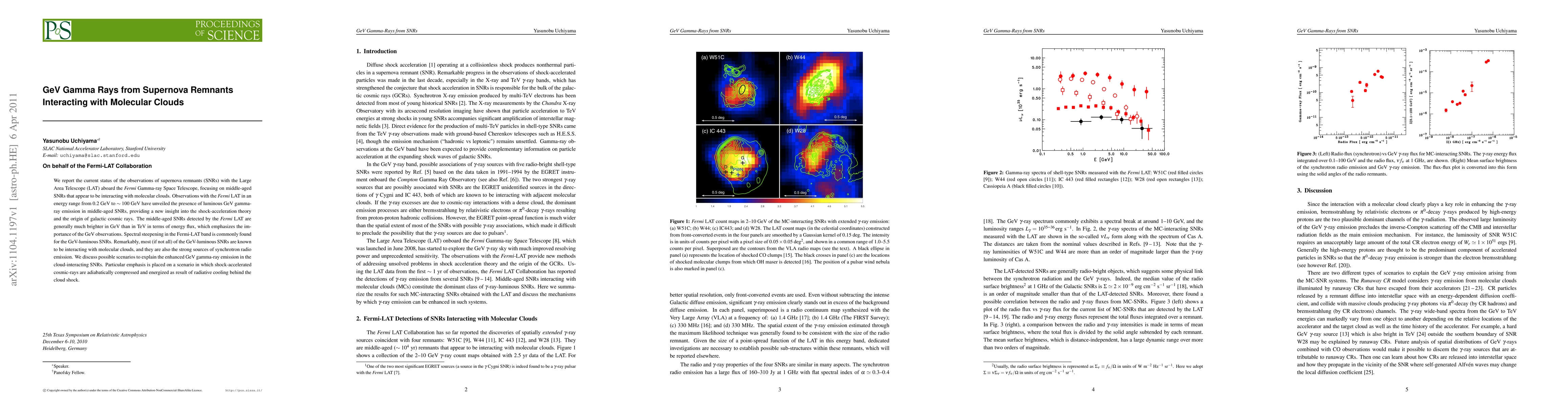 This paper reports on GeV gamma-ray observations of middle-aged supernova remnants (SNRs) interacting with molecular clouds using the Fermi Gamma-ray Space Telescope. The findings highlight the significant GeV emission from these SNRs, suggesting a new understanding of cosmic ray origins and emphasizing the role of GeV observations over TeV.