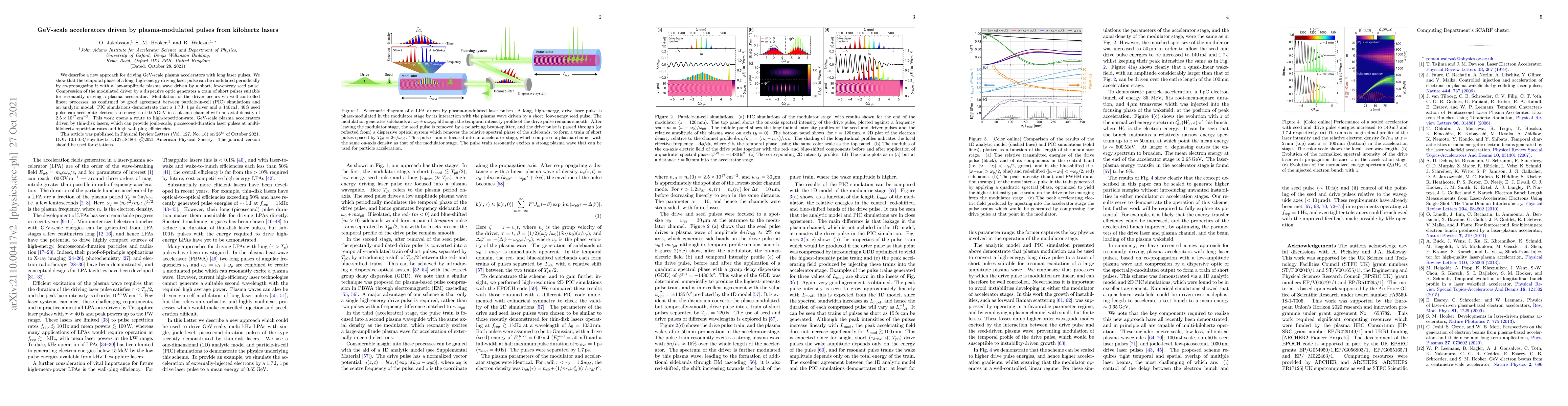 This paper proposes a novel method to drive GeV-scale plasma accelerators using modulated pulses from kilohertz lasers, demonstrating electron acceleration to 0.65 GeV. The technique involves modulating a long, high-energy laser pulse with a short, low-energy seed pulse, generating a train of short pulses for plasma acceleration, validated by simulations.