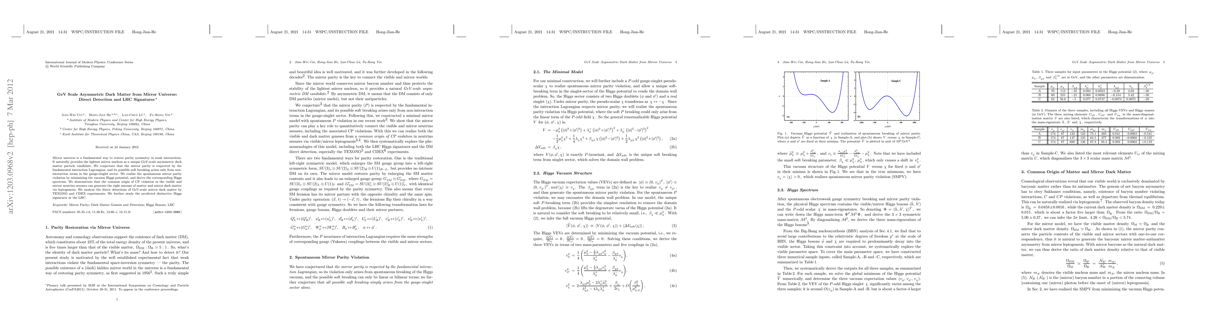 This paper explores GeV-scale asymmetric dark matter originating from a mirror universe, proposing the lightest mirror nucleon as a candidate. It examines direct detection prospects in TEXONO and CDEX experiments and predicts distinctive Higgs signatures at the LHC.