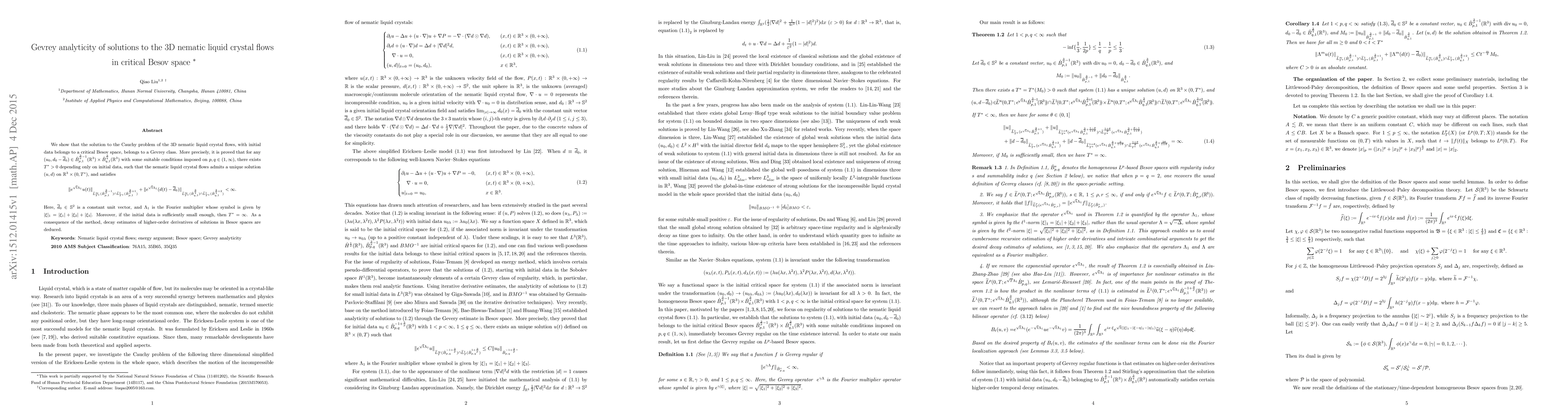 We show that the solution to the Cauchy problem of the 3D nematic liquid crystal flows, with initial data belongs to a critical Besov space, belongs to a Gevrey class. More precisely, it is proved that for any $(u_{0},d_{0} - \overline{d}_{0}) \in \dot{B}^{\frac{3}{p}-1}_{p,1} (\mathbb{R}^{3}) \times \dot{B}^{\frac{3}{q}}_{q,1} (\mathbb{R}^{3})$ with some suitable conditions imposed on $p, q\in(1,\infty)$, there exists $T^{*}>0$ depending only on initial data, such that the nematic liquid crystal flows admits a unique solution $(u,d)$ on $\mathbb{R}^{3} \times (0,T^{*})$, and satisfies \begin{align*} \|e^{\sqrt{t} \Lambda_{1}}{u}(t) \|_{\widetilde{L}^{\infty}_{T^{*}} (\dot{B}^{\frac{3}{p}-1}_{p,1}) \cap \widetilde{L}^{1}_{T^{*}} (\dot{B}^{\frac{3}{p}+1}_{p,1})} + \|e^{\sqrt{t}\Lambda_{1}} ({d}(t)- \overline{d}_{0}) \|_{\widetilde{L}^{\infty}_{T^{*}} (\dot{B}^{\frac{3}{q}}_{q,1}) \cap \widetilde{L}^{1}_{T^{*}}(\dot{B}^{\frac{3}{q}+2}_{q,1})} < \infty. \end{align*} Here, $\overline{{d}}_{0} \in \mathbb{S}^{2}$ is a constant unit vector, and $\Lambda_{1}$ is the Fourier multiplier whose symbol is given by $|\xi|_{{1}}=|\xi_{1}|+|\xi_{2}|+|\xi_{3}|$. Moreover, if the initial data is sufficiently small enough, then $T^{*}=\infty$. As a consequence of the method, decay estimates of higher-order derivatives of solutions in Besov spaces are deduced.