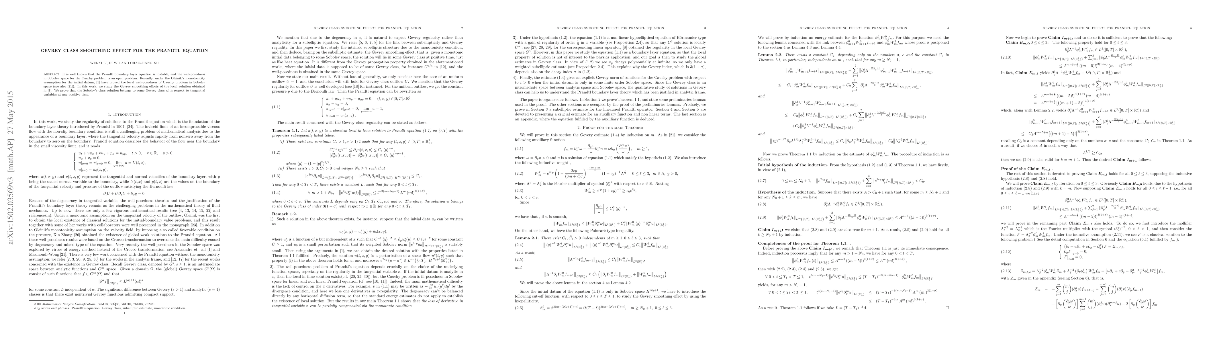 It is well known that the Prandtl boundary layer equation is instable, and the well-posedness in Sobolev space for the Cauchy problem is an open problem. Recently, under the Oleinik's monotonicity assumption for the initial datum, [1] have proved the local well-posedness of Cauchy problem in Sobolev space (see also [21]). In this work, we study the Gevrey smoothing effects of the local solution obtained in [1]. We prove that the Sobolev's class solution belongs to some Gevrey class with respect to tangential variables at any positive time.