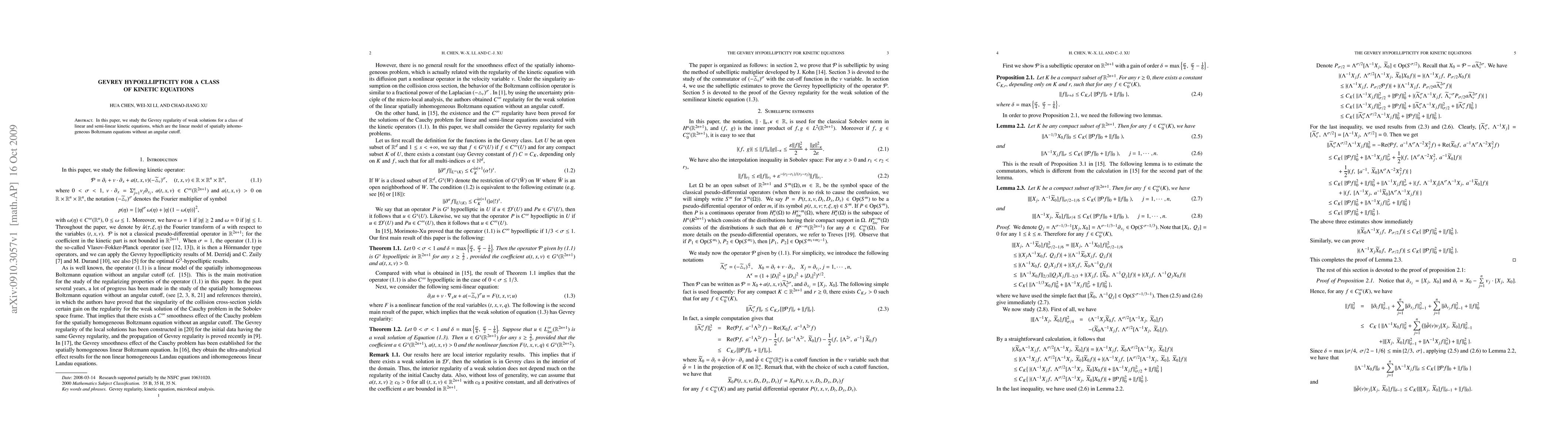 This paper investigates Gevrey regularity properties of weak solutions for a category of linear and semi-linear kinetic equations, modeling spatially inhomogeneous Boltzmann equations without angular cutoff. The study reveals hypoellipticity characteristics within this kinetic framework.