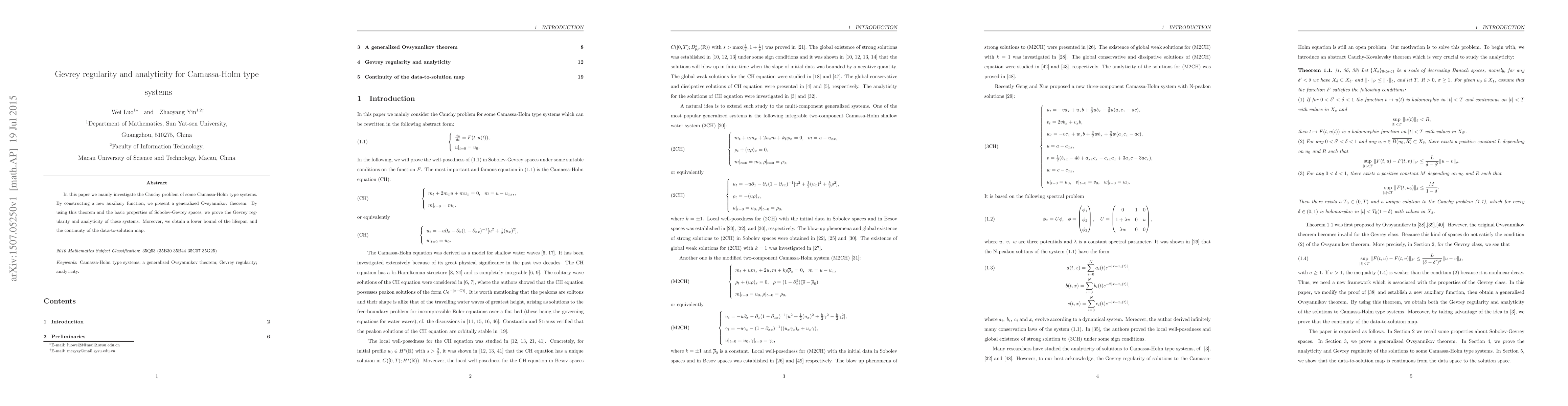 This paper investigates the Cauchy problem for Camassa-Holm type systems, proving Gevrey regularity and analyticity through a new auxiliary function and a generalized Ovsyannikov theorem. It also establishes a lower bound for the lifespan and continuity of the data-to-solution map.