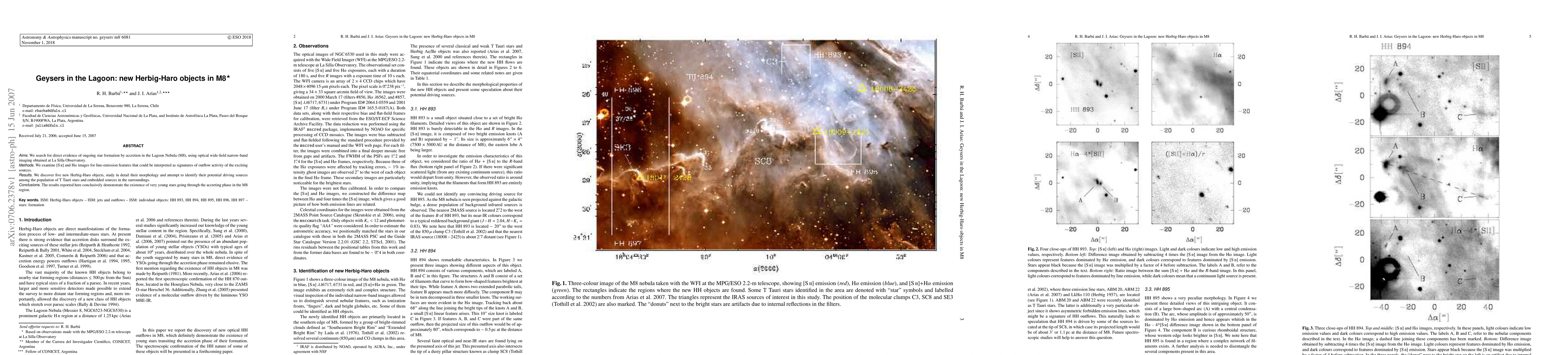 The study identifies five new Herbig-Haro objects in the Lagoon Nebula using optical imaging, providing evidence of ongoing star formation through accretion. The findings confirm the presence of very young stars in the M8 region undergoing the accreting phase.
